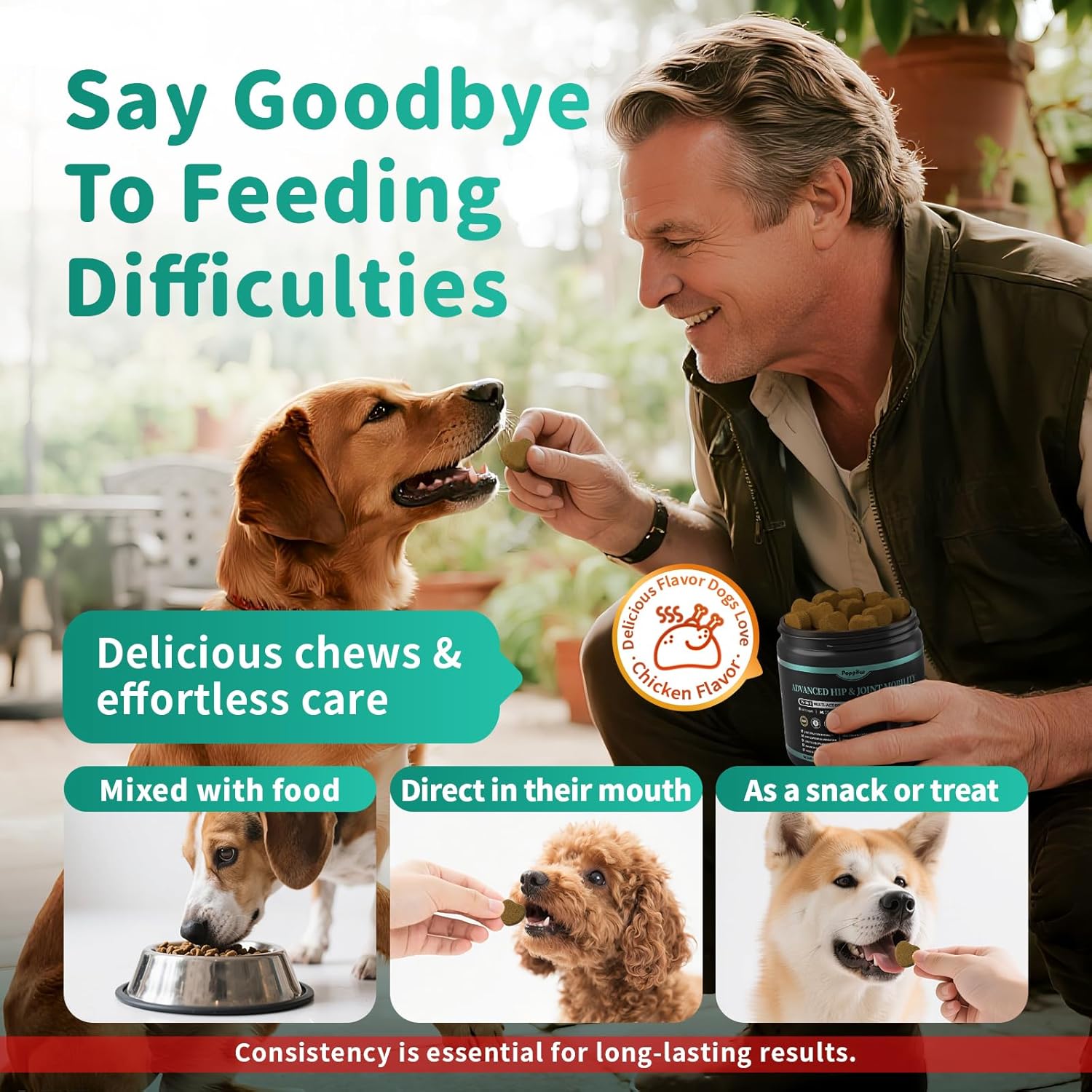 Dog Hip and Joint Supplement, 15-in-1 Advanced Glucosamine for Dogs with Chondroitin, MSM, New Zealand GLM, Pea, Omega 3 - Chicken Flavor - 90 Soft Chews, Fits All Breeds and Sizes