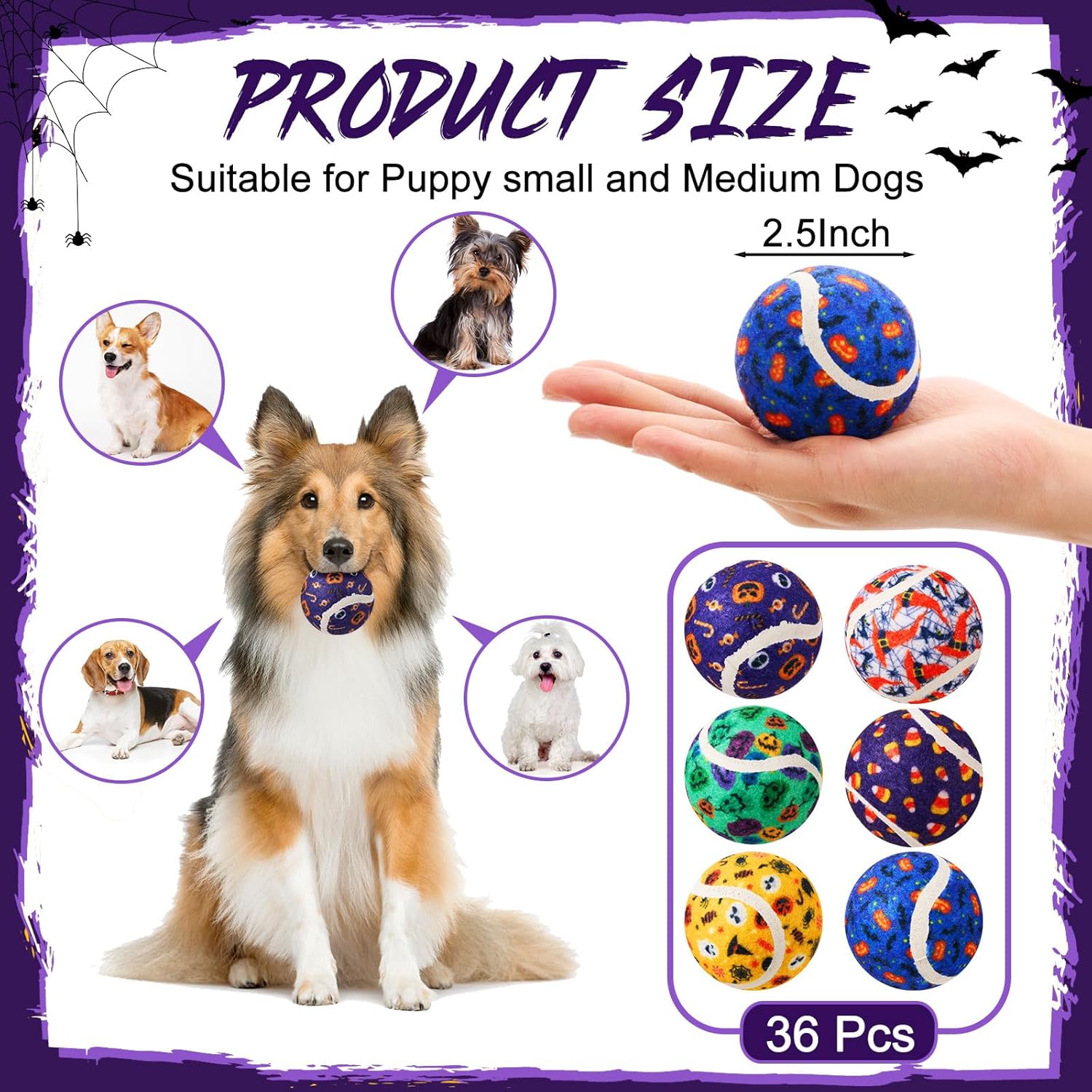 - Package Includes: You will receive 36 Halloween dog tennis ball in 6 festive designs, offering a variety of fun for your pet; These Halloween dog toys bulk are ideal for replacing worn-out balls or sharing with multiple pets in the household