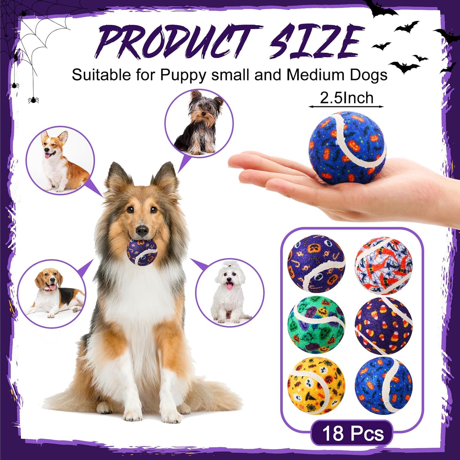 - Package Includes: You will receive 18 Halloween dog tennis ball in 6 festive designs, offering a variety of fun for your pet; These Halloween dog toys bulk are ideal for replacing worn-out balls or sharing with multiple pets in the household