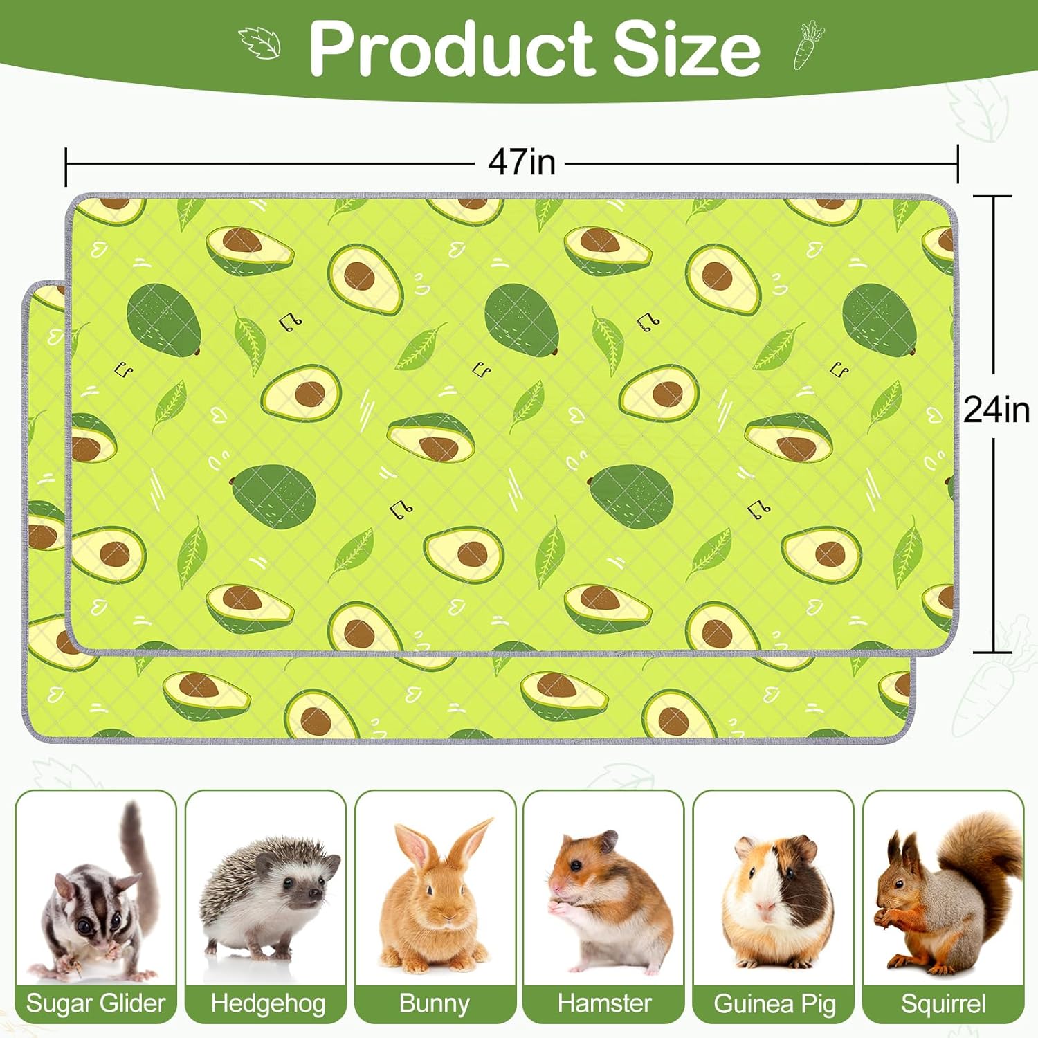 Bienbee Guinea Pig Bedding, 2 Pack 47" x 24" Reusable Guinea Pig Cage Liner Waterproof and Absorbent Small Animal Bedding Washable Pee Pads for Small Pet Hamster Rabbit Squirrel, Avocado
