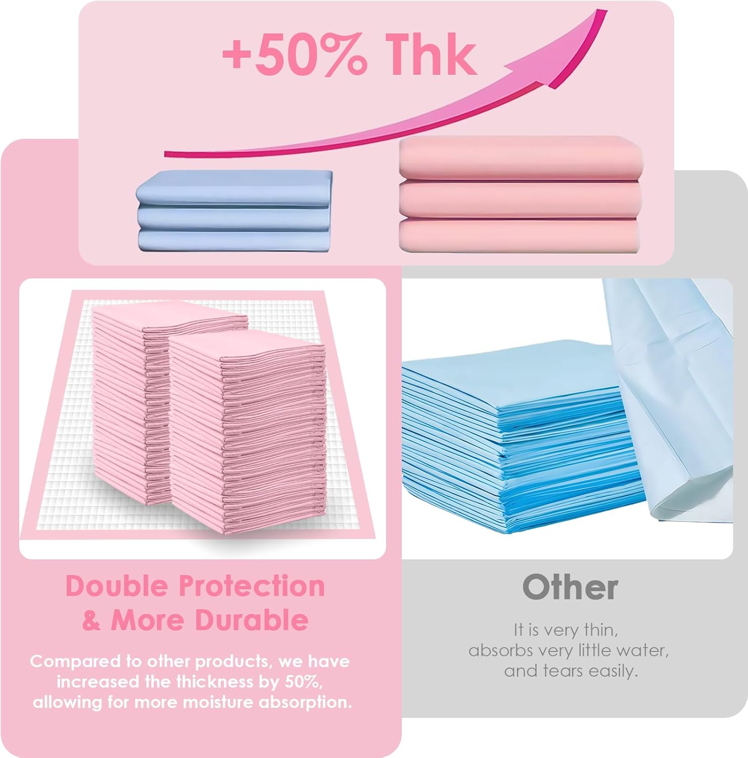 Pet Toilet Training Pads Disposable Puppy Pee Pads for Pets, Ultra Absorbent|Quick Dry|Leak-Proof Pet Potty Pads for Dog, Cat, Rabbits and Guinea Pigs (Pink, 13" x 18"-50 Count)