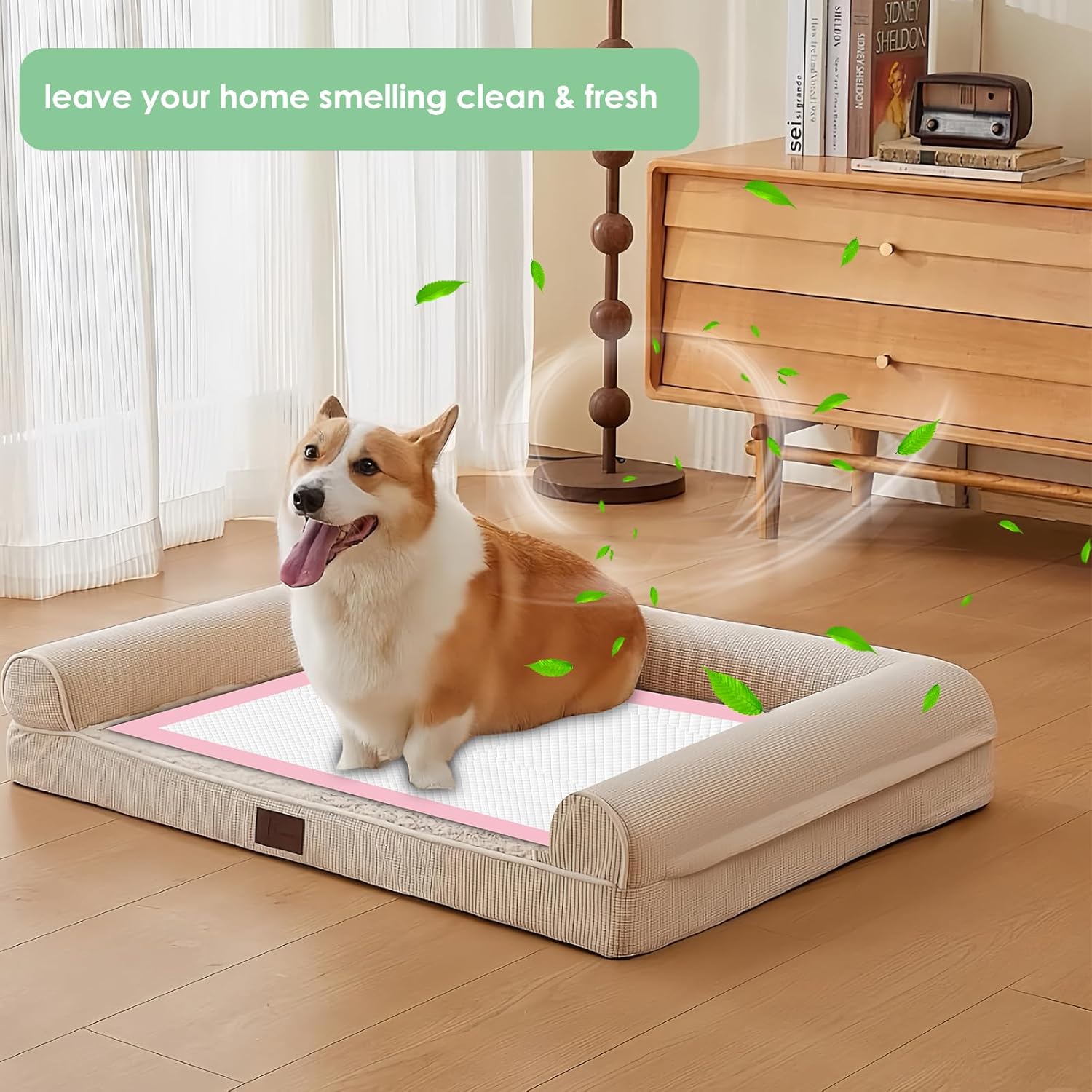 - Puppy Potty Training Pads adopt Top layer seals in wetness and prevents odors, ultra-absorbent core with premium liquid locking technology. Quick-drying potty pads with enhanced odor control for indoor/outdoor and car use.