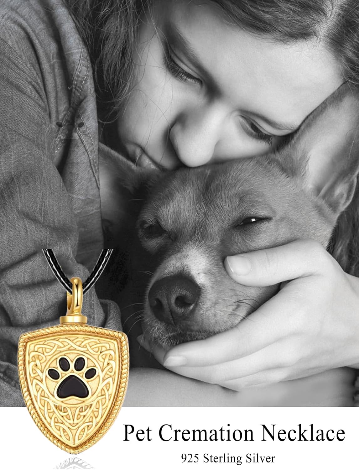Dreamboat Pet Urn Necklace for Dog Cat Ashes 925 Sterling Silver Paw Print Cremation Keepsake Pendant Celtic Knot Memorial Jewelry Gifts for Women Men