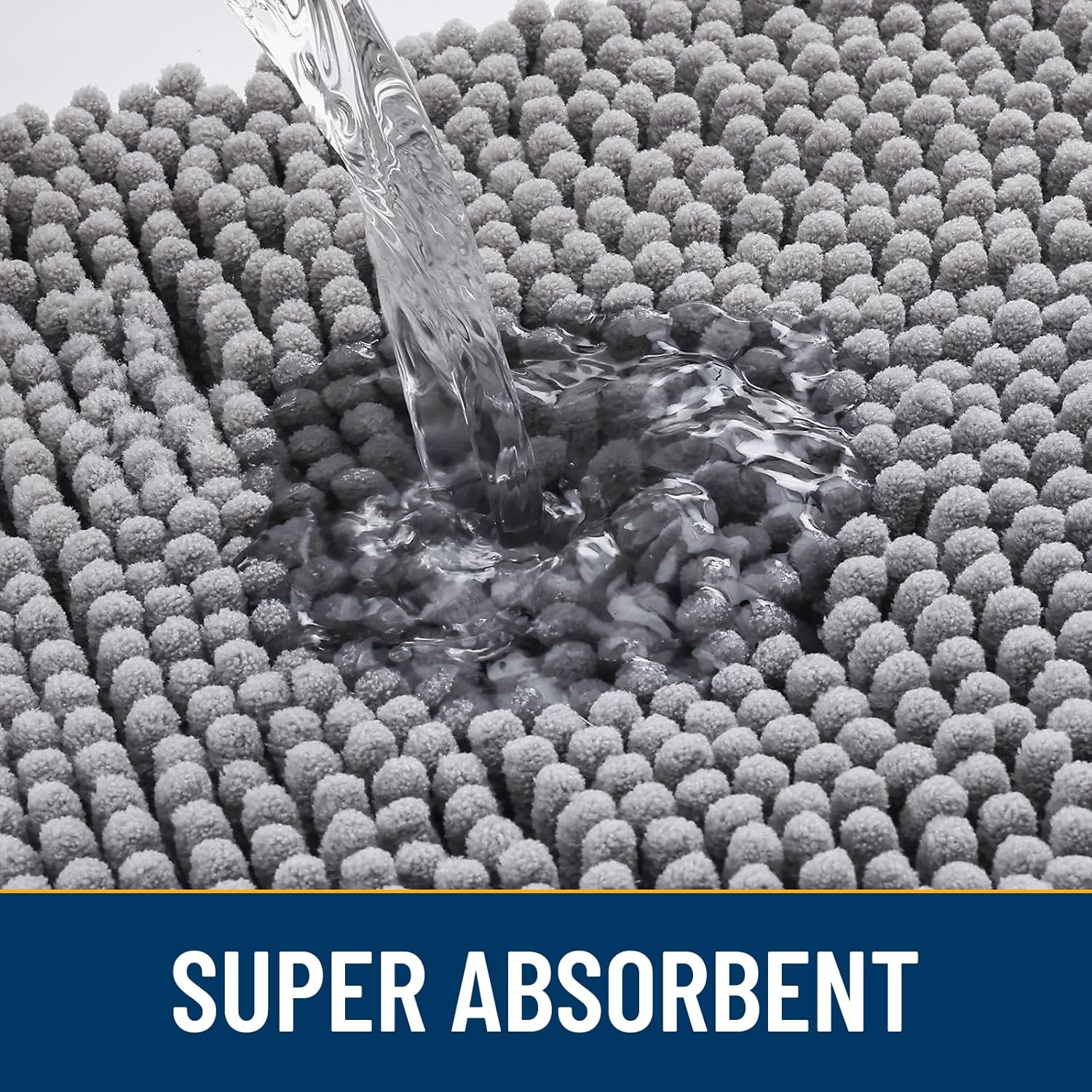 Smiry Dog Door Mat for Muddy Paws 30x17, Absorbs Moisture and Dirt Doormat, Non-Slip Washable Quick Dry Chenille Front Door Mat Indoor Entrance, Entryway Carpet for Inside Floor, Grey