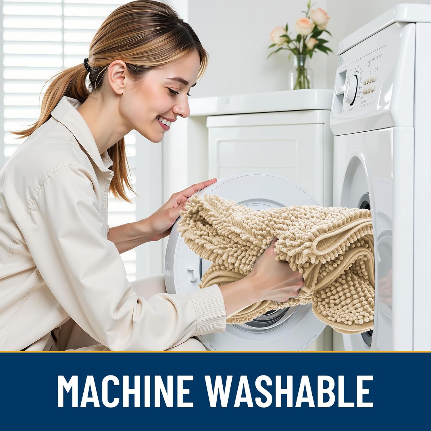 Smiry Dog Door Mat for Muddy Paws 30x17, Absorbs Moisture and Dirt Doormat, Non-Slip Washable Quick Dry Chenille Front Door Mat Indoor Entrance, Entryway Carpet for Inside Floor, Beige