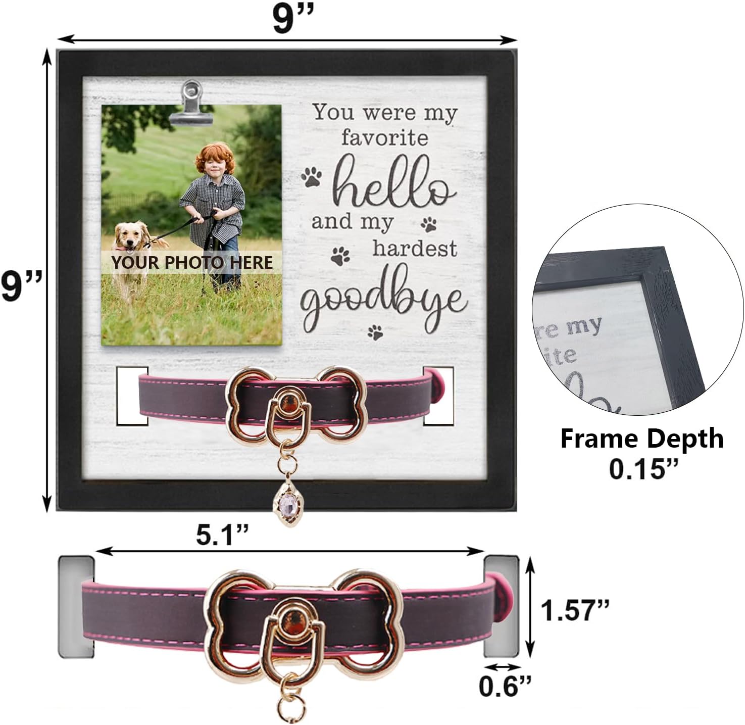 - 【Versatile & Easy to Display】 Perfect for tabletop or wall mounting, this frame fits standard photo sizes (such as 4x6 or 5x7 inches). It’s designed for easy photo swapping so you can update the picture as you cherish new memories or moments. A meaningful way to keep your beloved pet’s presence alive in your everyday life.