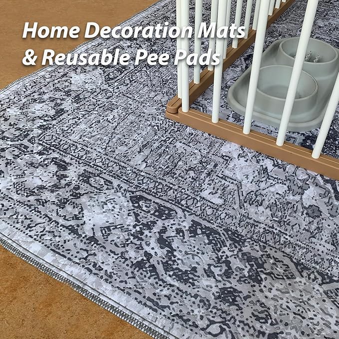 nunubaby Washable Pee Pads for Dogs, Stylish, Non-Slip and Leak-Proof Pee Pads. Reusable Potty Pads for Dogs for Crates and Floors.(Gray/Geo, 24" x48")