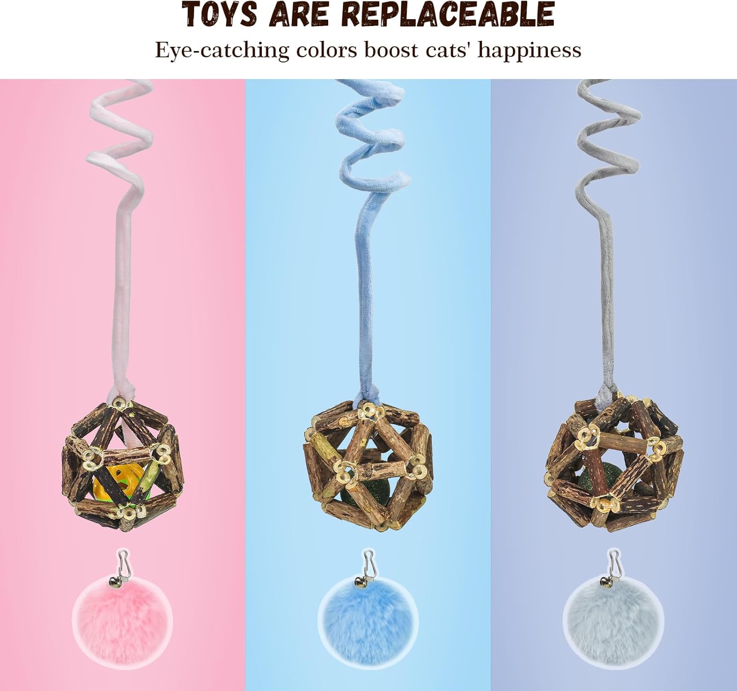 - 【Full-Body Workout for Indoor Cats】Hanging Retractable Catnip Cat Spring Toys are essential for maintaining your cat's physical activity. The dangling fluffy balls encourage your little hunter to jump, swat, and pounce, supporting a healthy lifestyle through engaging exercise and interactive play.
