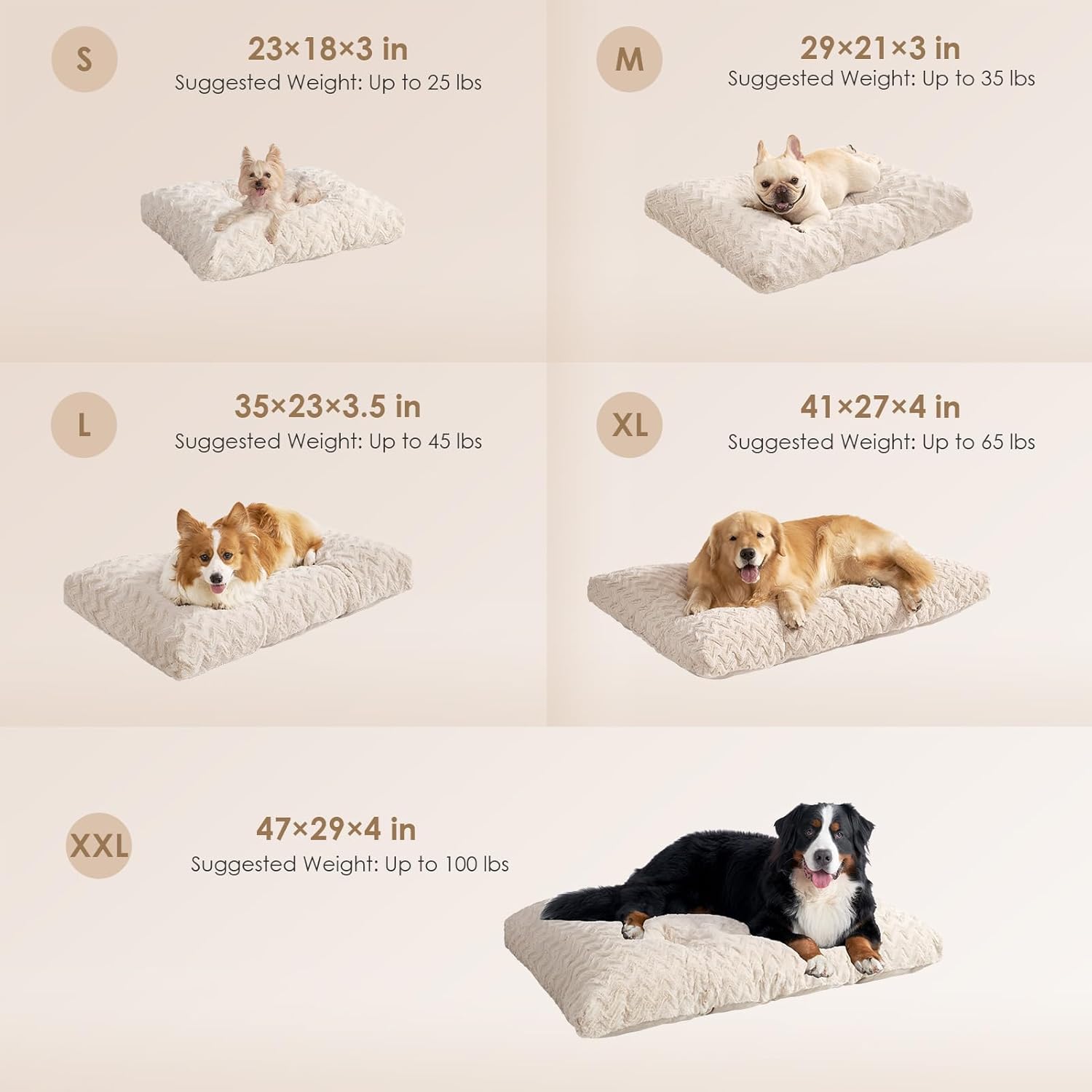 EHEYCIGA Reversible Dog Crate Bed Washable, Comfort Fluffy Plush Dog Kennel Pad for Extra Large Dogs, Deluxe Machine Washable XL Pet Sleeping Mats, 41" x 27"x 4", Beige