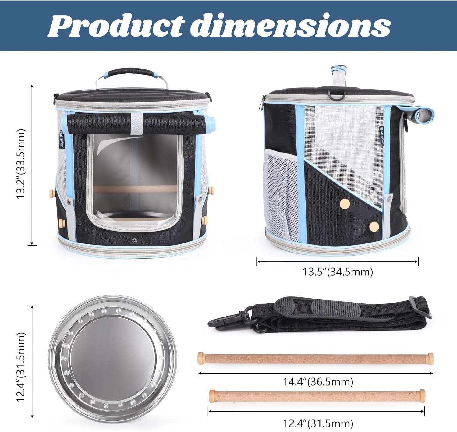 - PORTABLE DESIGN: Durable carrier with a sturdy top handle makes transportation comfortable and secure for both owner and bird