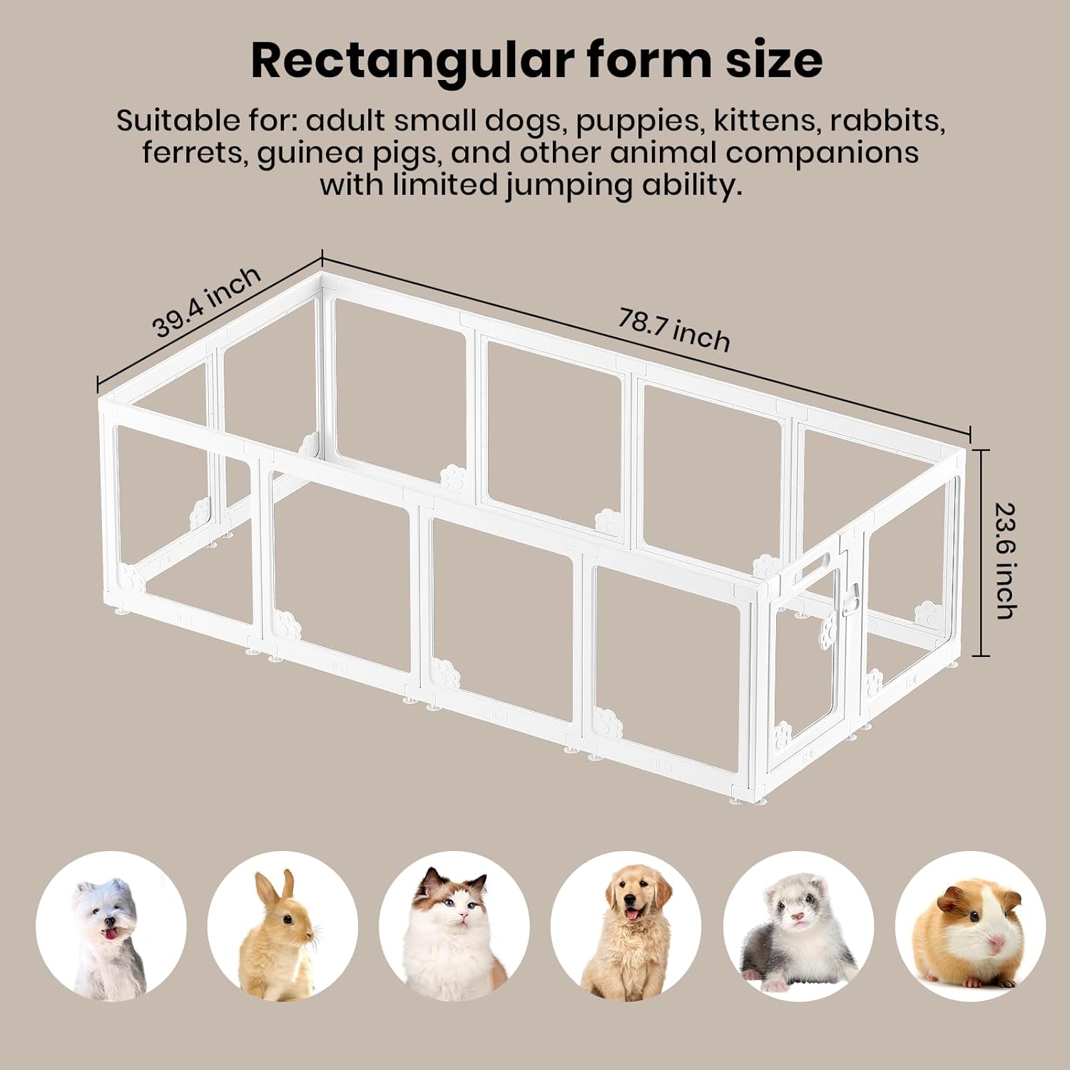 Expandable 12PCS Dog Playpen for Indoors, Modular Puppy Play Pen with Lockable Doors, Chew-Proof Transparent Panels & Waterproof Base. Perfect for Small Animals, Puppy Training or Multi-Pet Homes