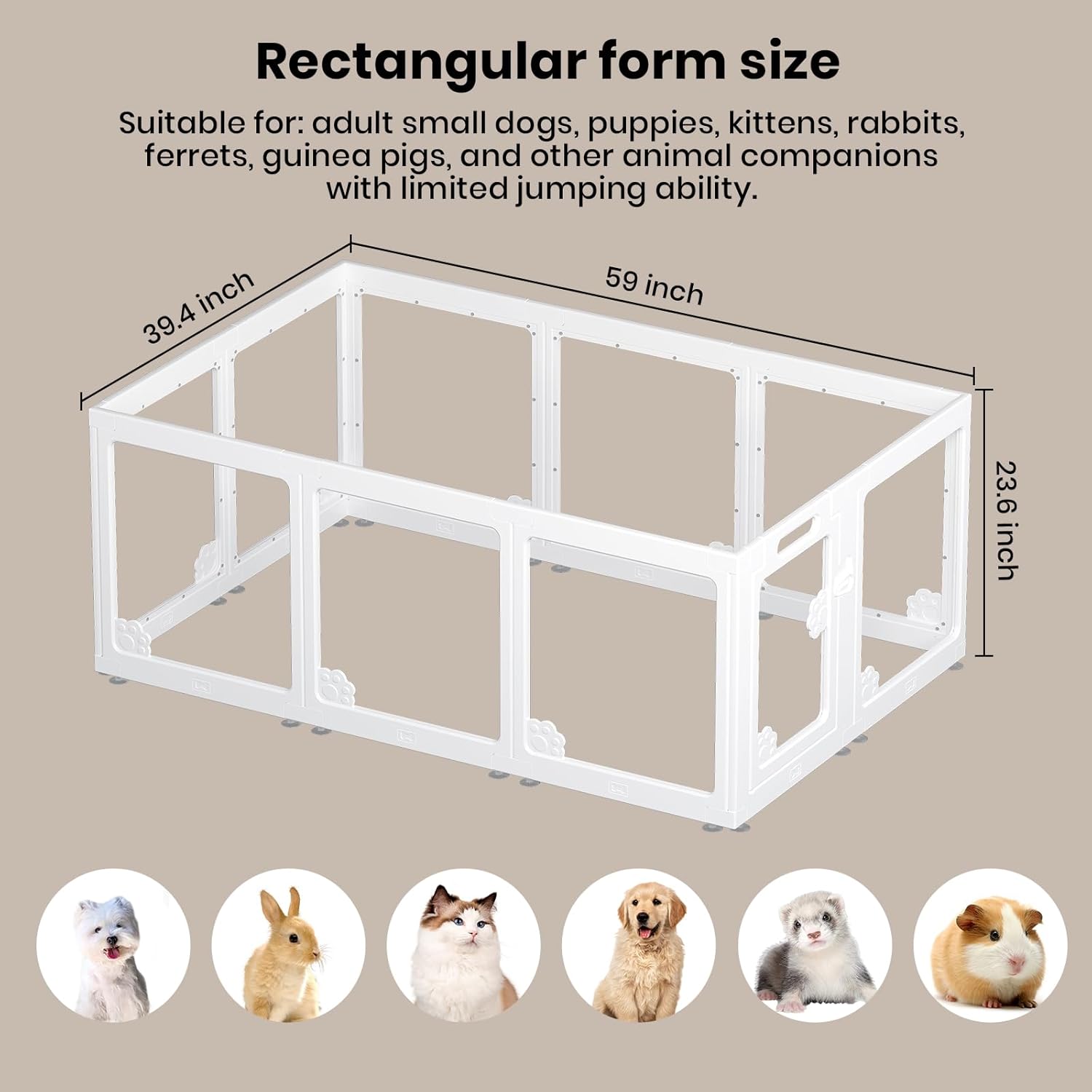 Expandable 10PCS Dog Playpen for Indoors, Modular Puppy Play Pen with Lockable Door, Chew-Proof Transparent Panels & Waterproof Base. Perfect for Small Animals, Puppy Training or Multi-Pet Homes