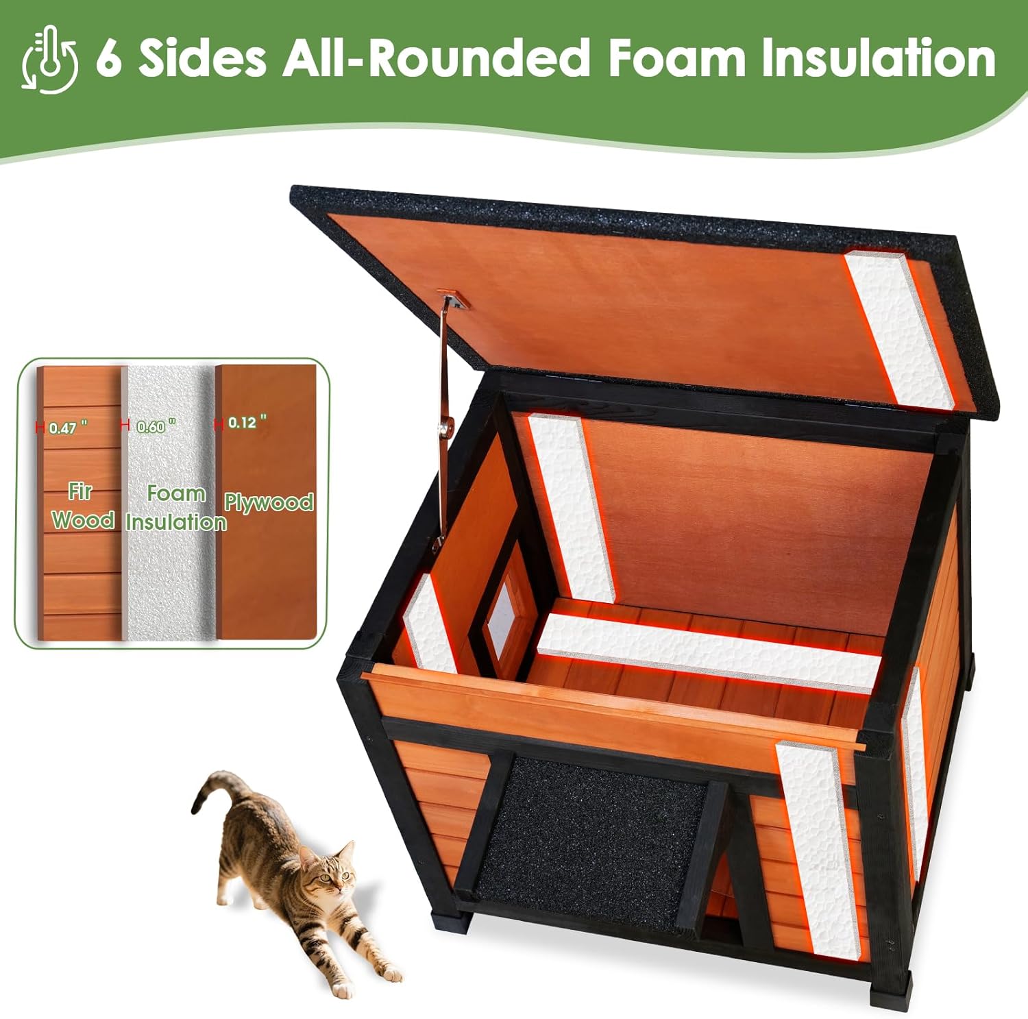 Insulated Cat House Weatherproof Outdoor/Indoor Shelter with Openable Asphalt Roof for Feral Cats & Small Pets