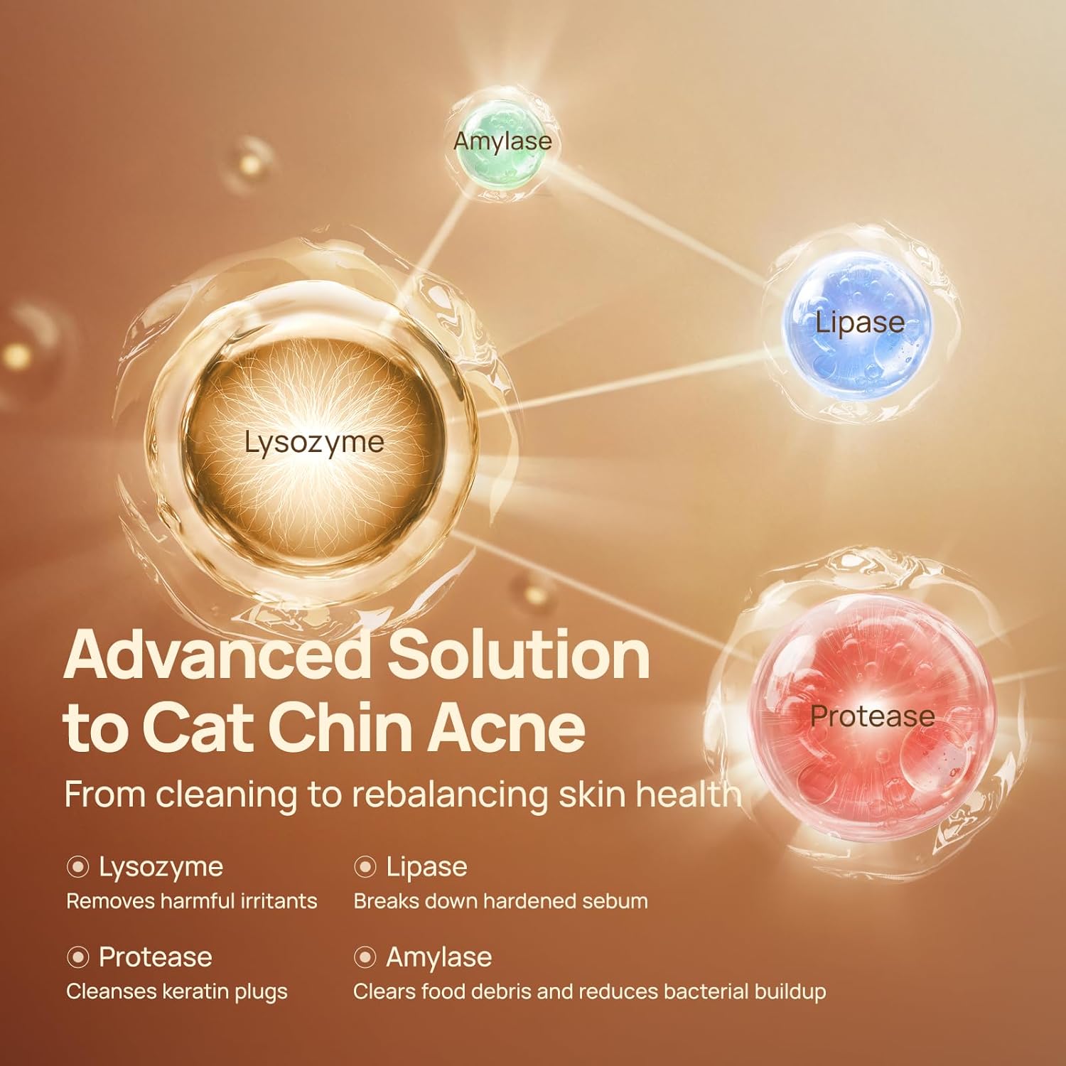 - Targeted Care for Feline Acne: Cat chin acne doesn't just affect appearance—it can cause discomfort. Your cat may scratch or rub their chin frequently, and even experience pain while eating or touching their food bowl. Our acne chin finger wipes are specially designed for cleaning the chin area, effectively removing excess oil, dirt, and food residue. They help reduce blackheads, unclog pores, and prevent feline acne.