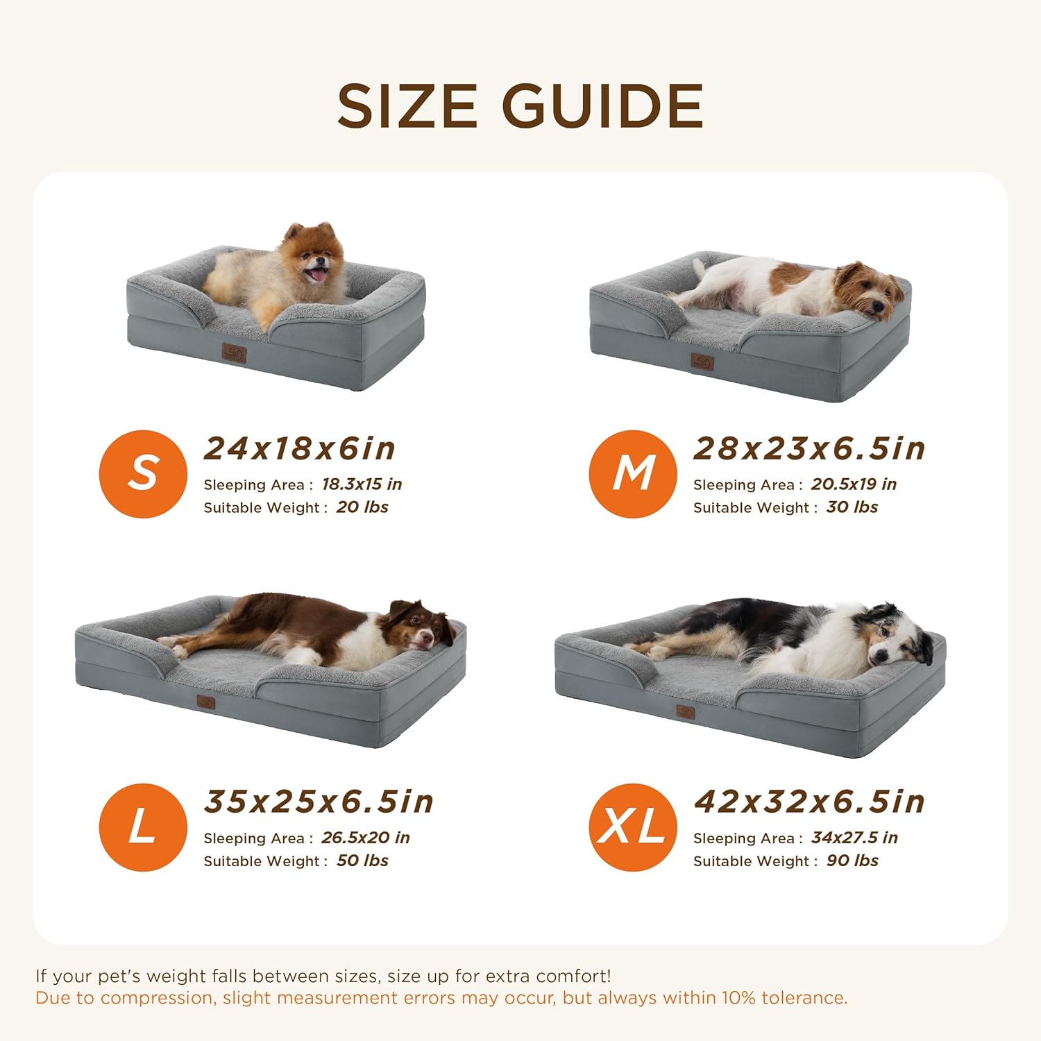 - Orthopedic Support: Our orthopedic dog sofa is designed to give your pet unparalleled support for a deep, dreamy sleep. High-density egg-crate foam helps distribute weight evenly and provides the perfect amount of pressure relief and joint support.