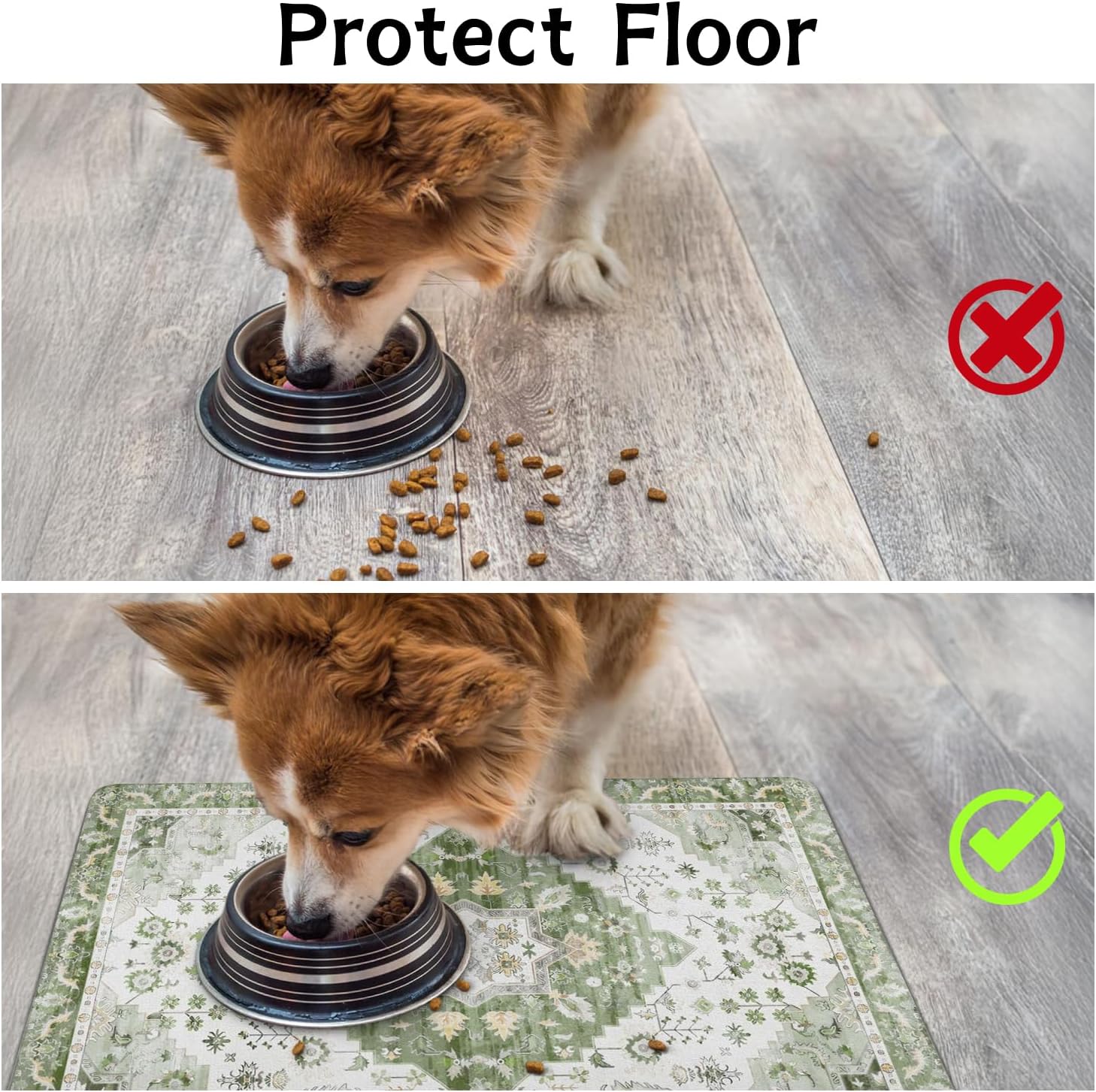 - Protect Floors: The dog food mats for floors waterproof is 100% leak-proof, protecting your floor from water damage and preventing your pet's paws from getting wet and leaving tracks. Cat matt for food and water can be placed under automatic feeders and water dispensers, or used as a cat litter mat or pet sleeping mat.