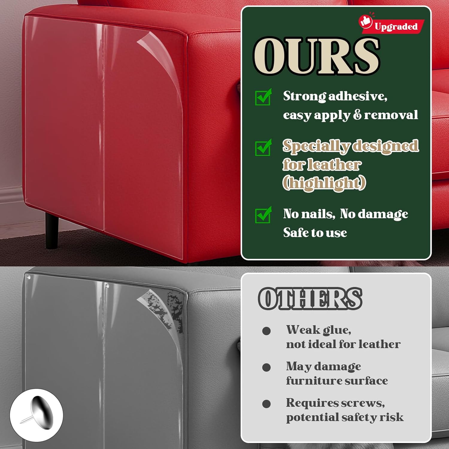- Strong Adhesive for Leather:Each sheet is backed with premium adhesive designed for leather, with a strong 20N hold that sticks firmly without damaging your furniture. Easily removable with no adhesive residue.A powerful anti-scratch deterrent for leather furniture