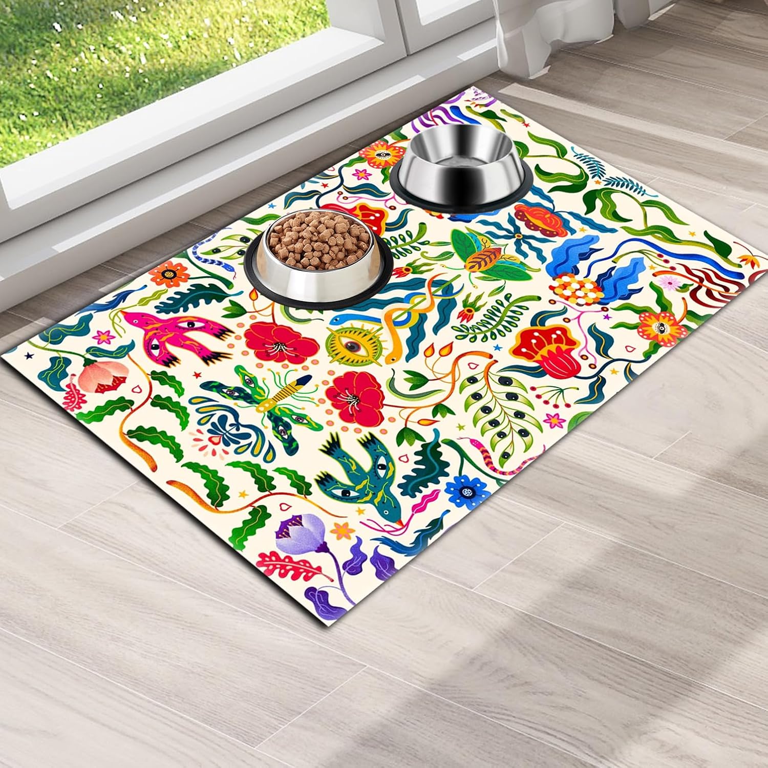 Pet Feeding Mat for Dogs and Cats - Super Absorbent Anti-Slip Bowl Pad, Eco-Friendly Washable Mat to Prevent Spills and Mess Vintage Mat 16"x24"
