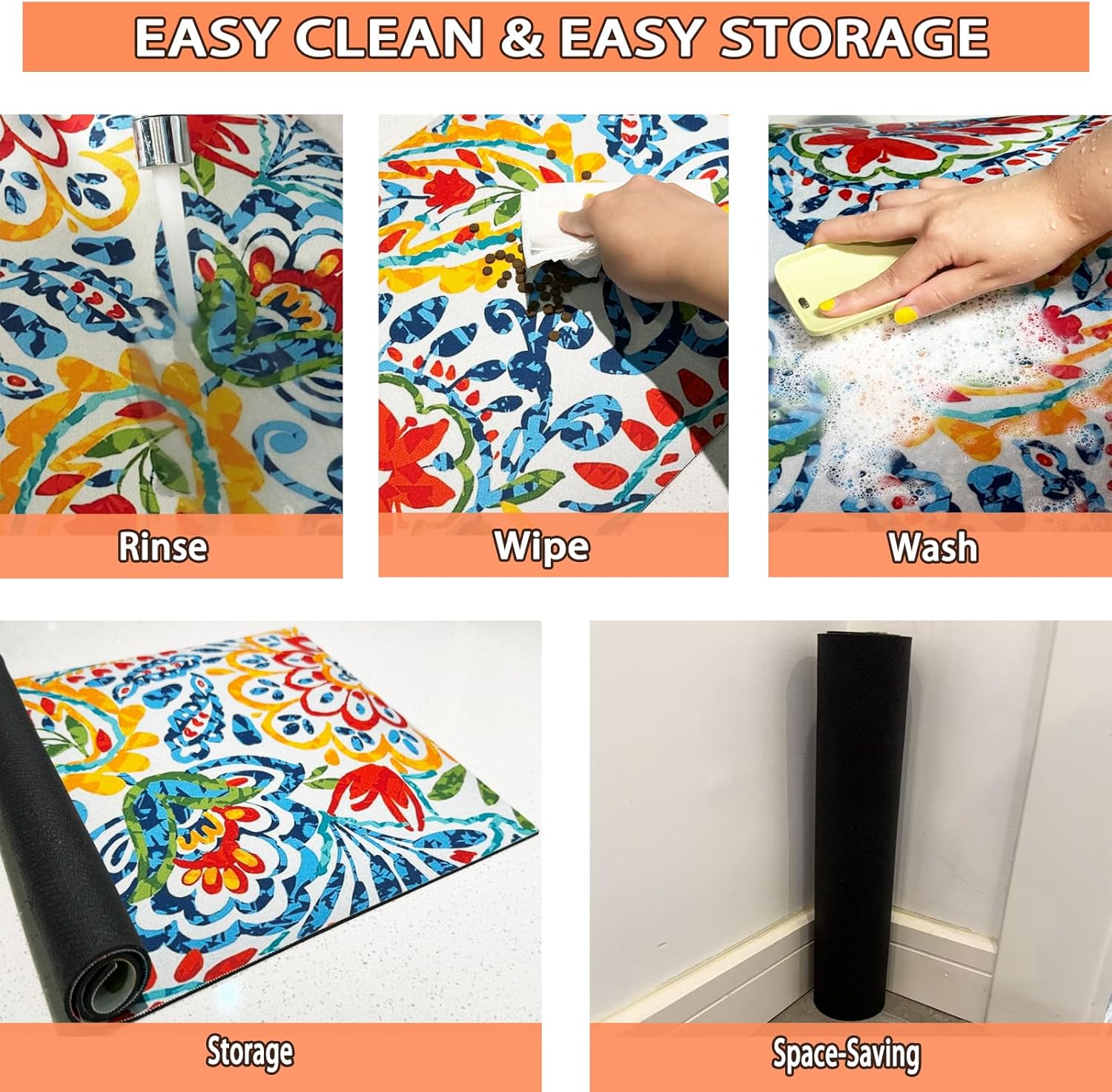 Pet Feeding Mat for Dogs and Cats - Super Absorbent Anti-Slip Bowl Pad, Eco-Friendly Washable Mat to Prevent Spills and Mess Colorful Mat 16"x24"