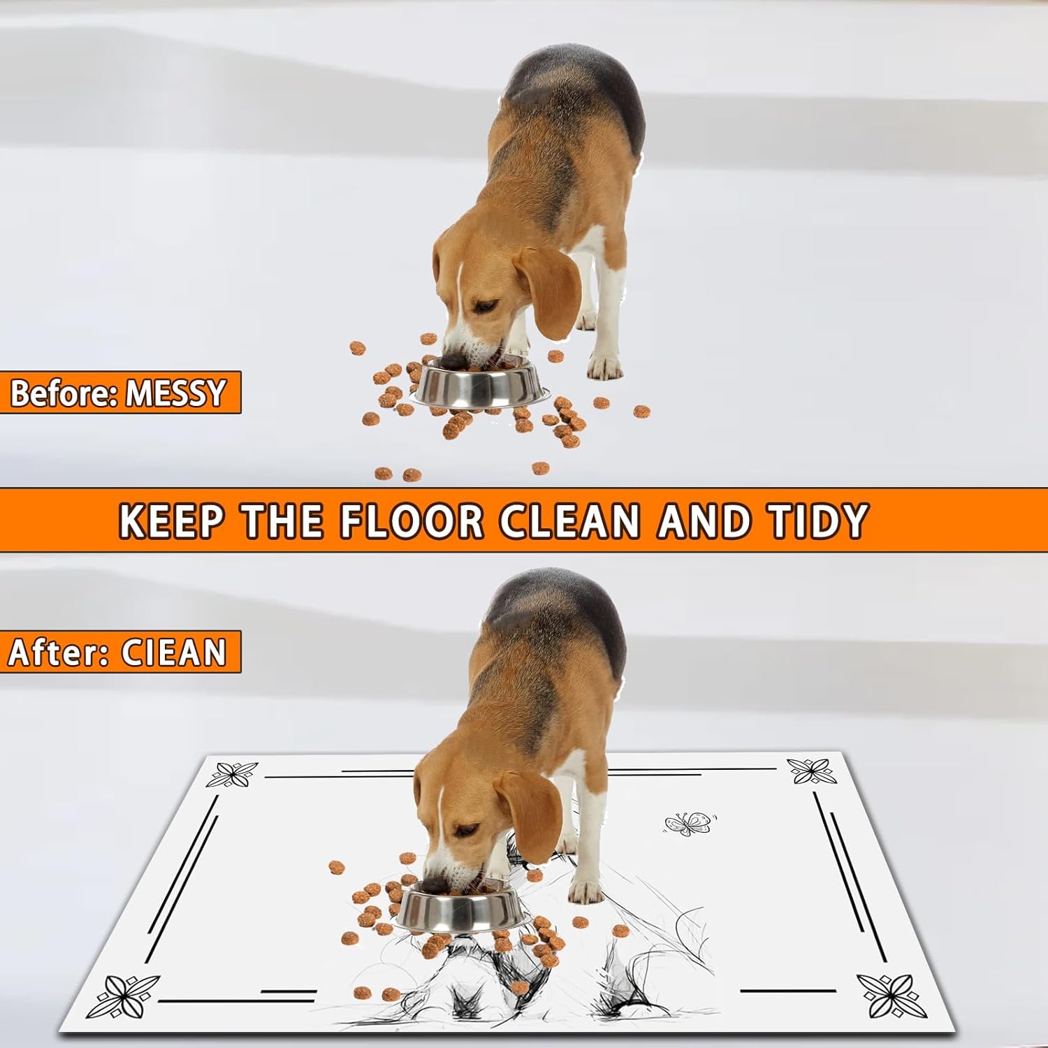 - 【Premium Absorbent Material】Our pet feeding mat features a highly absorbent surface that quickly soaks up spills and drools,It effectively prevents wet paws and keeps your pet's eating area clean.
