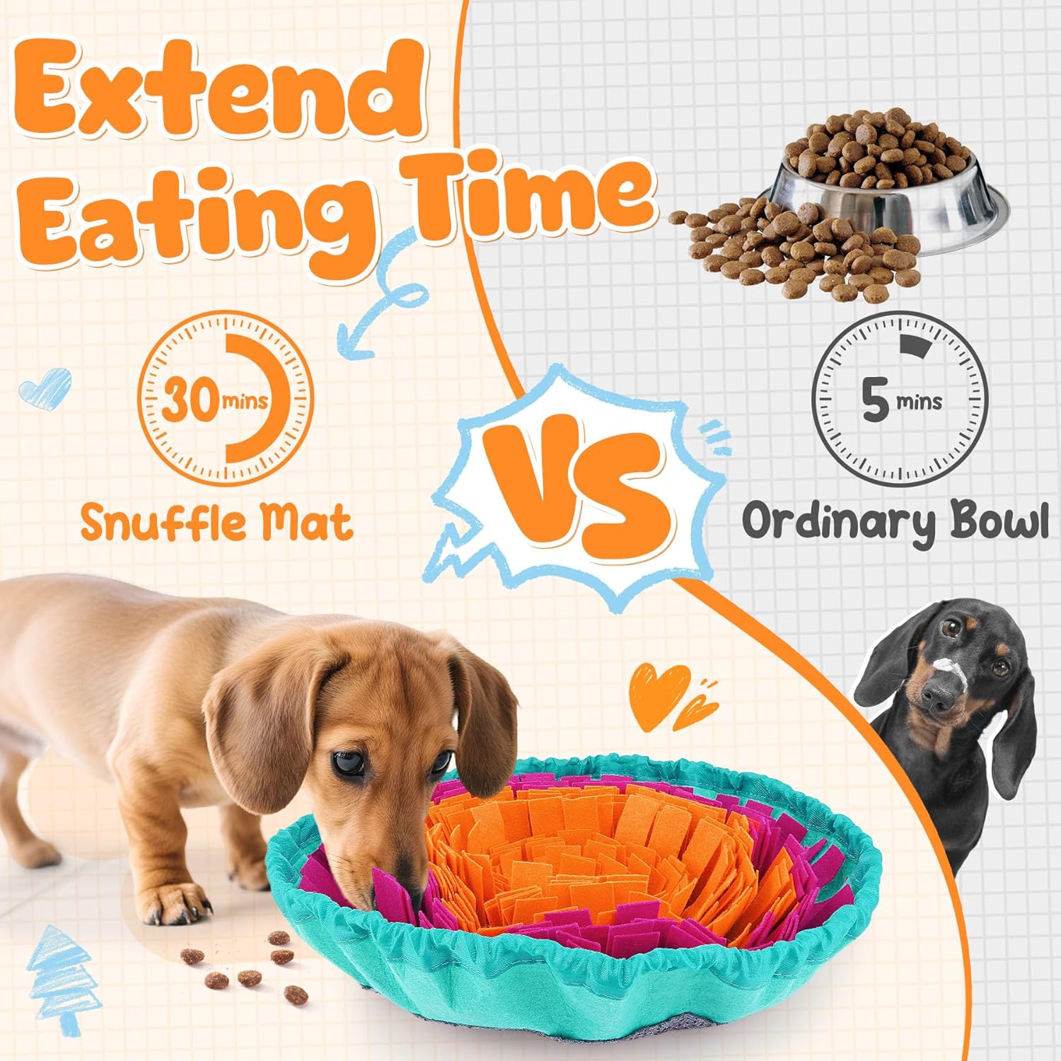 - Snuffle Mat for Natural Foraging Fun:The snuffle mat mimics grassy textures, encouraging dogs to sniff out hidden treats—just like natural foraging. It folds into a bowl for easy use at home or on the go, helping reduce boredom and build healthy habits