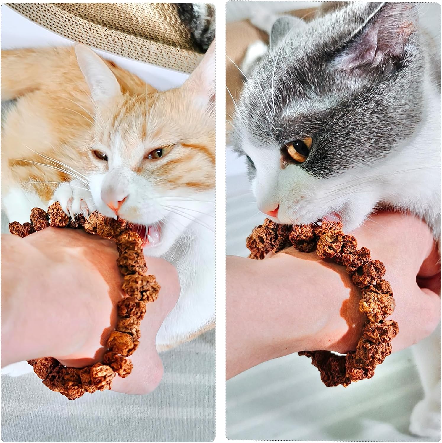 - Unique Bracelet Toy Design: 30 gallfruits, approx. 1.1 oz, Strung together in a bracelet formation, these dried gall fruits maintain their potency and provide long-lasting entertainment .It is best cat chew toy,cat dental toy,cat teething toys .