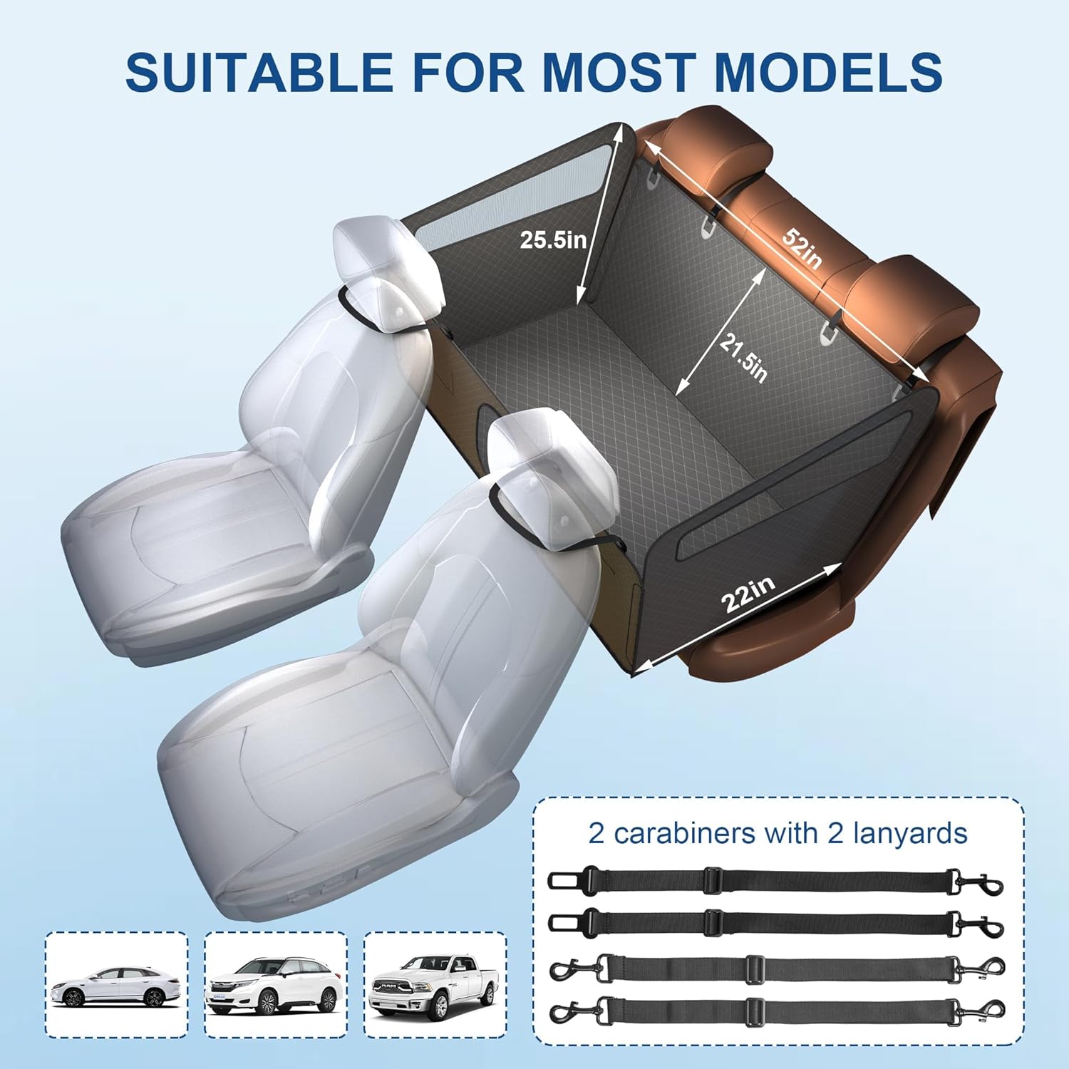 - 【More space, more safety】 Turn your backseat into a spacious, safe zone for your pet! Our Backseat Extender expands up to 52" x 25", perfect for large dogs or multiple pets. Made with durable, non-slip EVA material, it stays securely in place and keeps your pet safe even during sudden stops.
