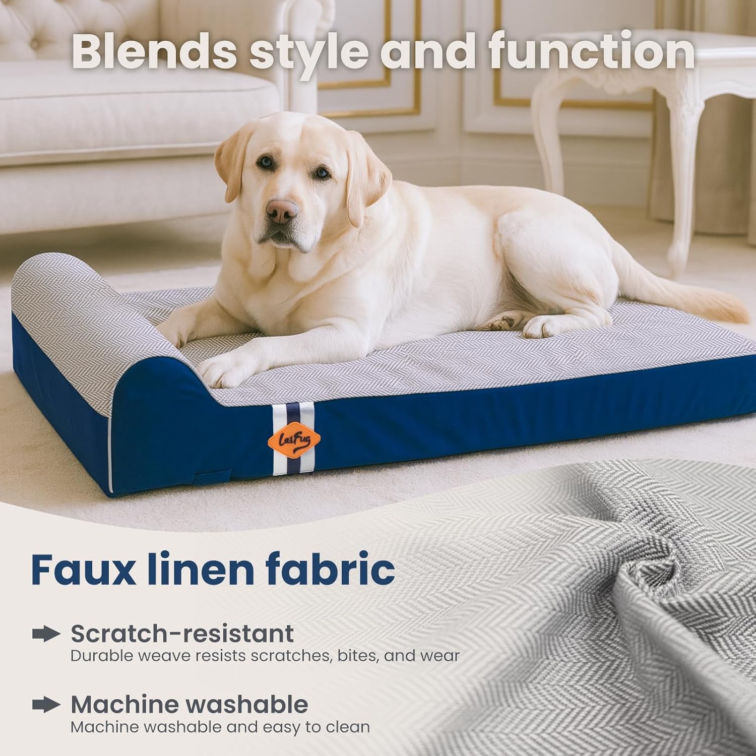 Laifug Orthopedic Memory Foam Extra Large Dog Bed with Pillow and Durable Water Proof Liner & Removable Washable Cover & Smart Design (Large (46"x28"x8"), Grey Blue)