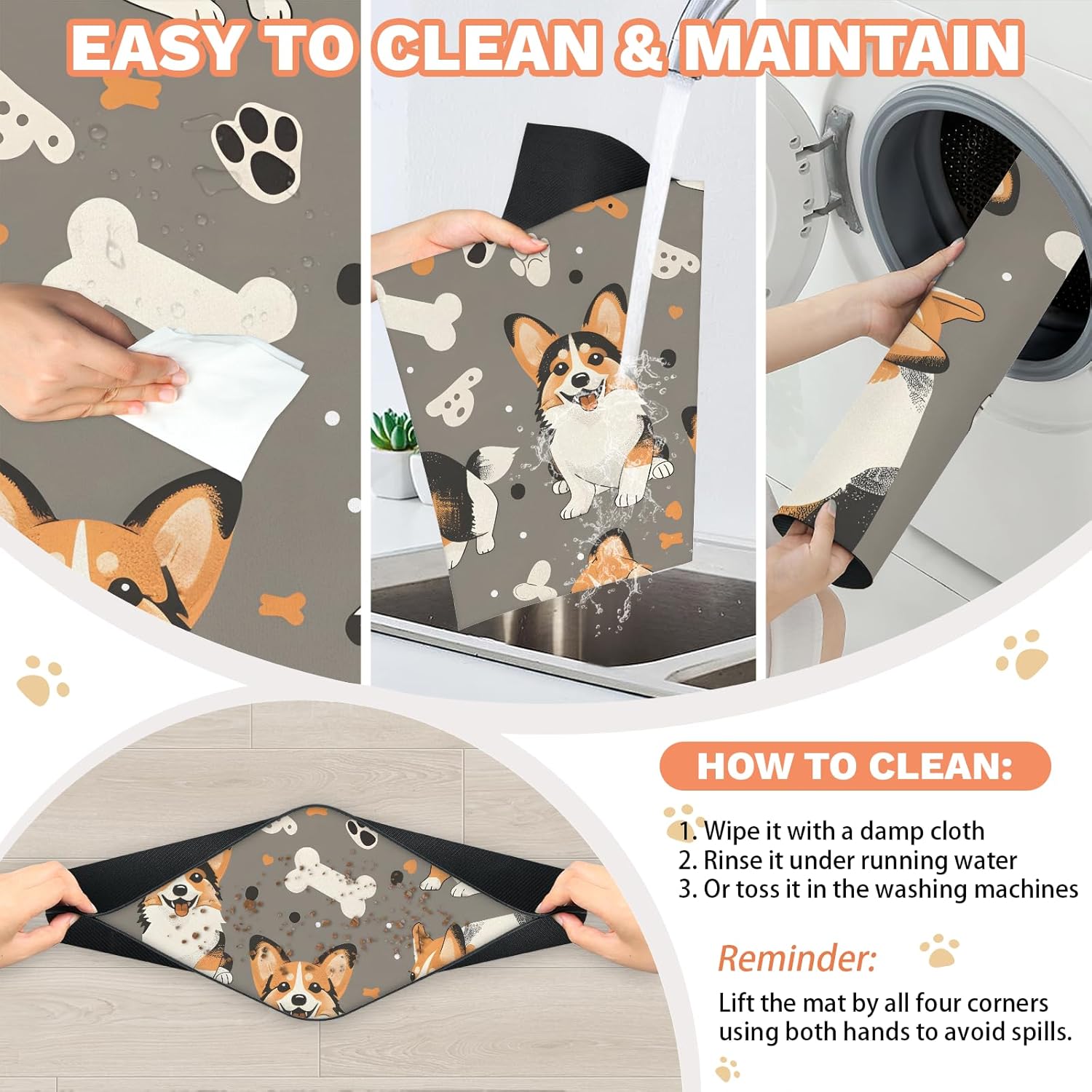 Corgi Dog Cat Food Mat,12"x20" Inches Rapid Absorbent Pet Feeding Mat,Pets Placemat Water Bowl Mats with Rubber Backing,No Stains Cat Dog Feeding Mats Indoor,Pet Accessories Supplies