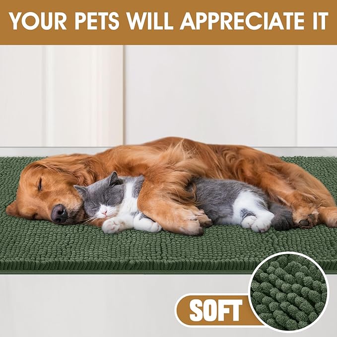 Dog Door Mats for Muddy Paws, Chenille Absorbent Dog Mats, Non Slip Heavy Mud Mat for Dogs, Soft Pet Mat for Entryway, Mud Paws, Inside Floor,48" x 38", Olive
