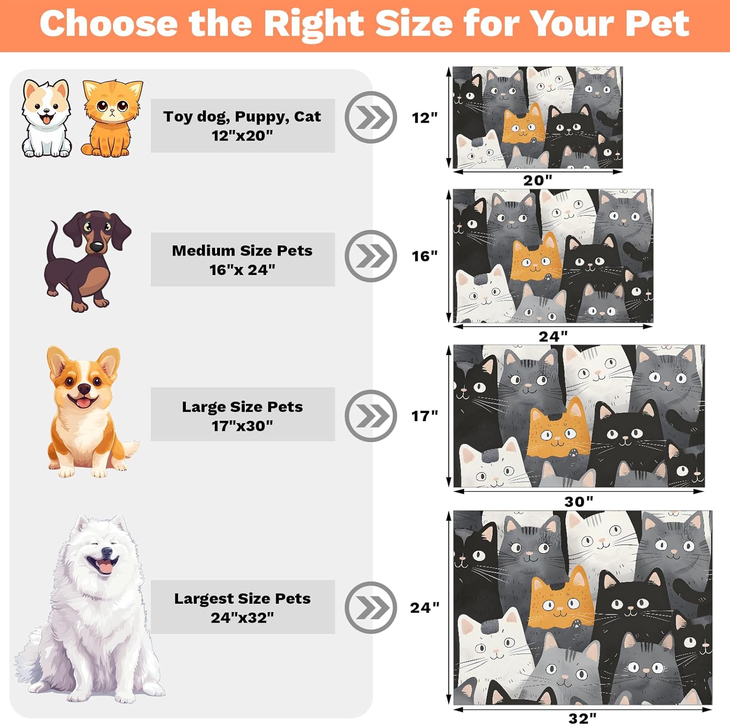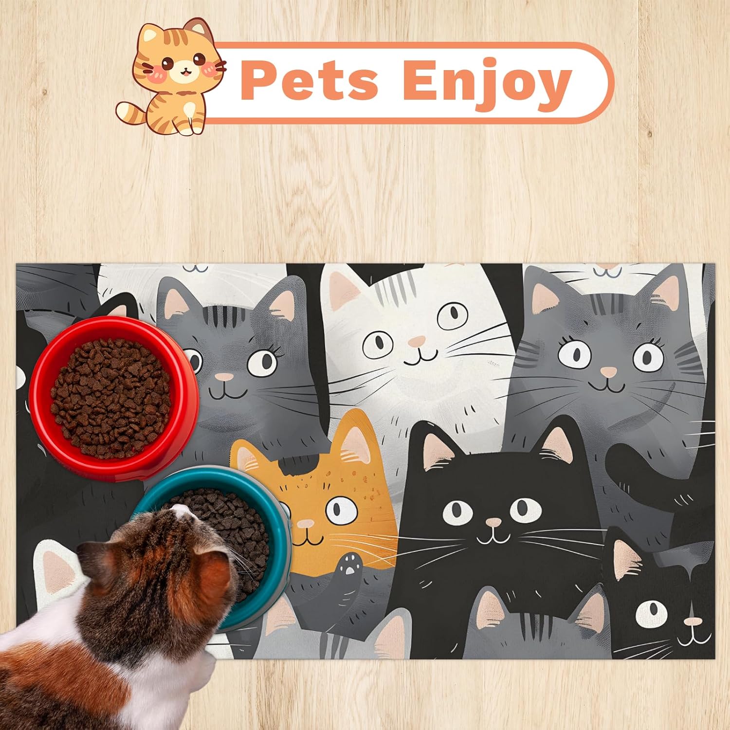 Dog Cat Food Mat,12"x20" Inches Rapid Absorbent Pet Feeding Mat,Pets Placemat Water Bowl Mats with Rubber Backing,No Stains Cat Dog Feeding Mats Indoor,Pet Accessories Supplies,Cartoon Cats