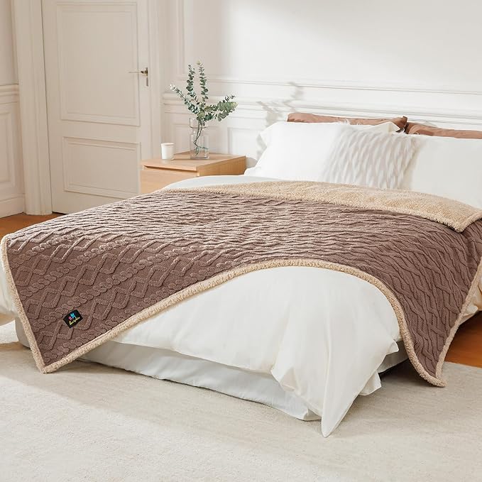 Waterproof Pet Blanket, Liquid Pee Proof Dog Blanket for Sofa Bed Couch, Reversible Sherpa Fleece Furniture Protector Cover for Small Medium Large Dogs Cats, Khaki King Size(90" x 82")