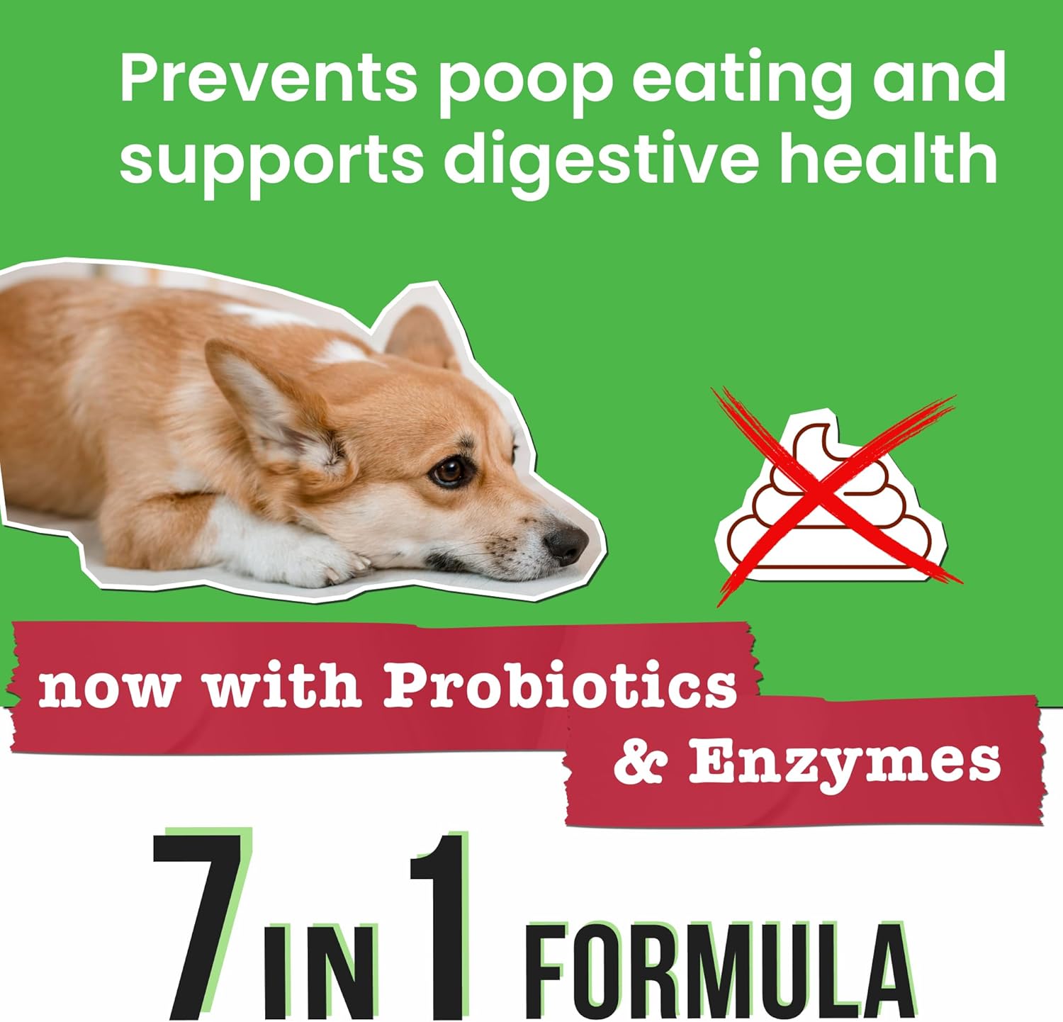 - Supports Digestive Health: Our stool eating deterrent for dogs, packed with probiotics and digestive enzymes, not only deters stool eating but also improves nutrient absorption and promotes a healthy gut.