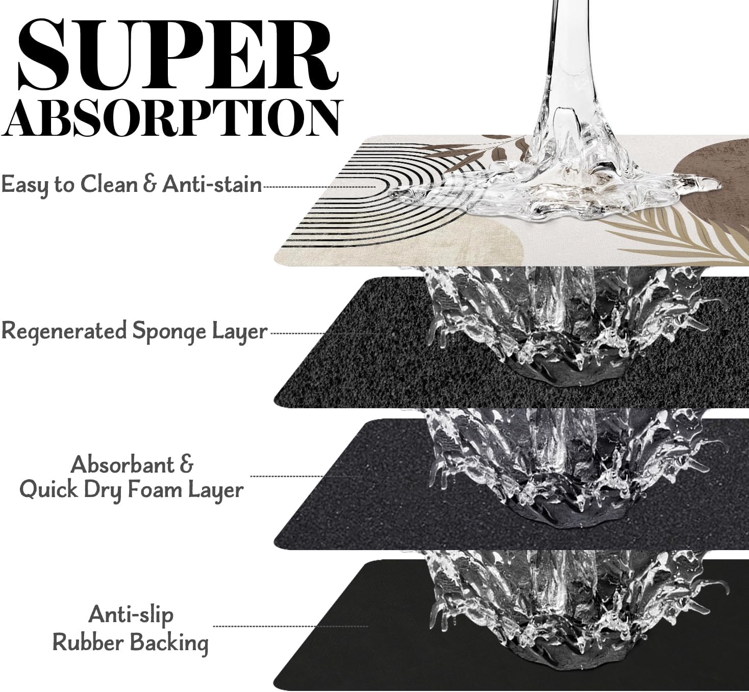 - Super Absorption: The dog mat for water bowl can absorb spilled water without leaving traces and dry quick, avoid wetting pet paws even for messy drinkers. And it does not attract pet hair like traditional silicone dog bowl mat.