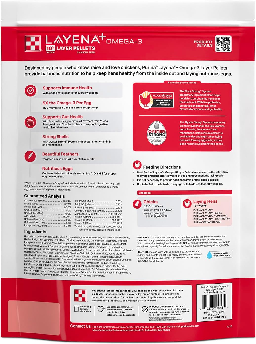 Purina® Layena®+ Omega-3 Chicken Feed Pellets, 10 Pound Bag