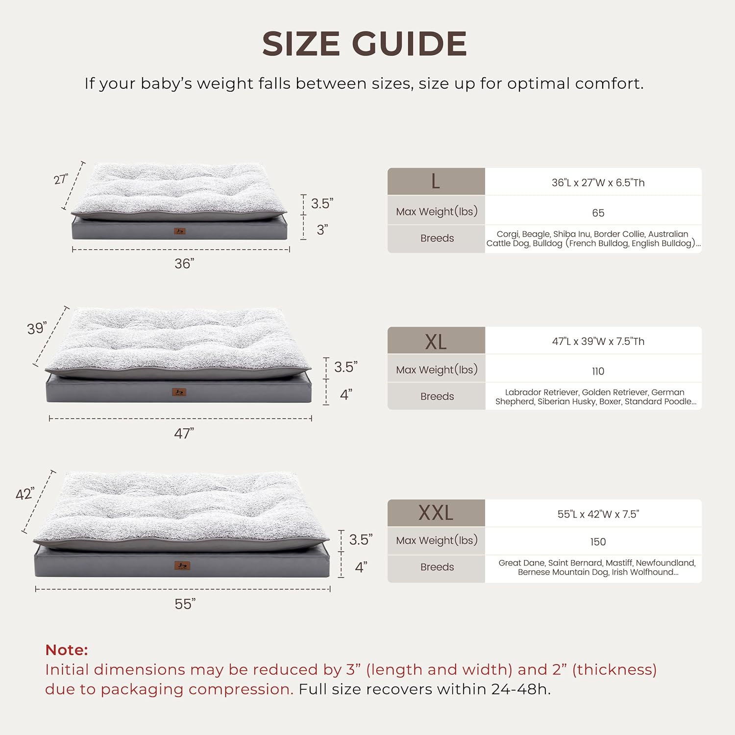 - Dog Mat Sizes: This crate bed availables in 36", 47", and 55" sizes to fit all breeds. Sturdy yet lightweight design with reinforced handles (matching base fabric) for easy portability.