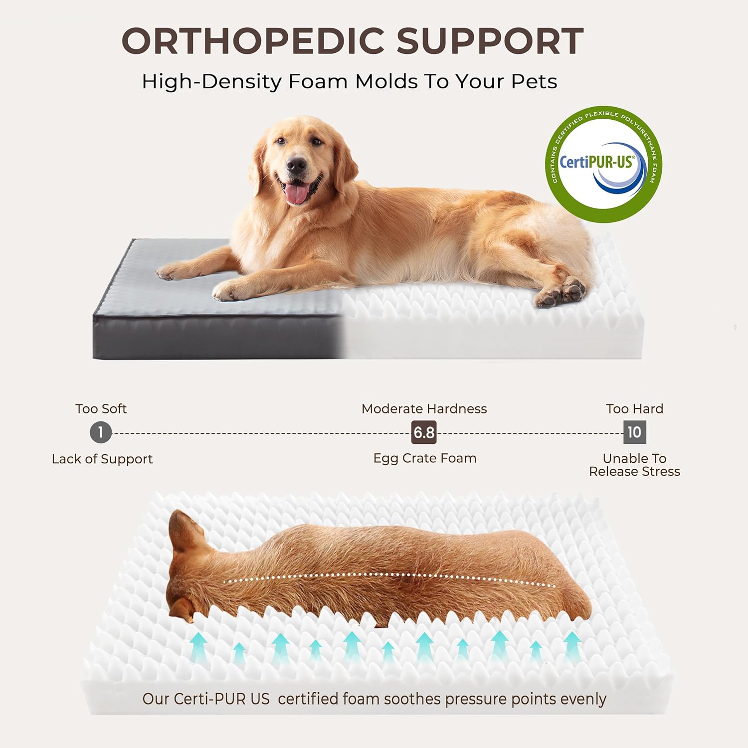 Orthopedic Dog Bed for Ctrate, Waterproof PillowTop Pet Bed for Medium Large Size Dogs, Egg-Crate Foam Dog Crate Mat with Removable Washable Cover, 2-Layers Kennel Pad 47"L x 39"W, Dark Grey