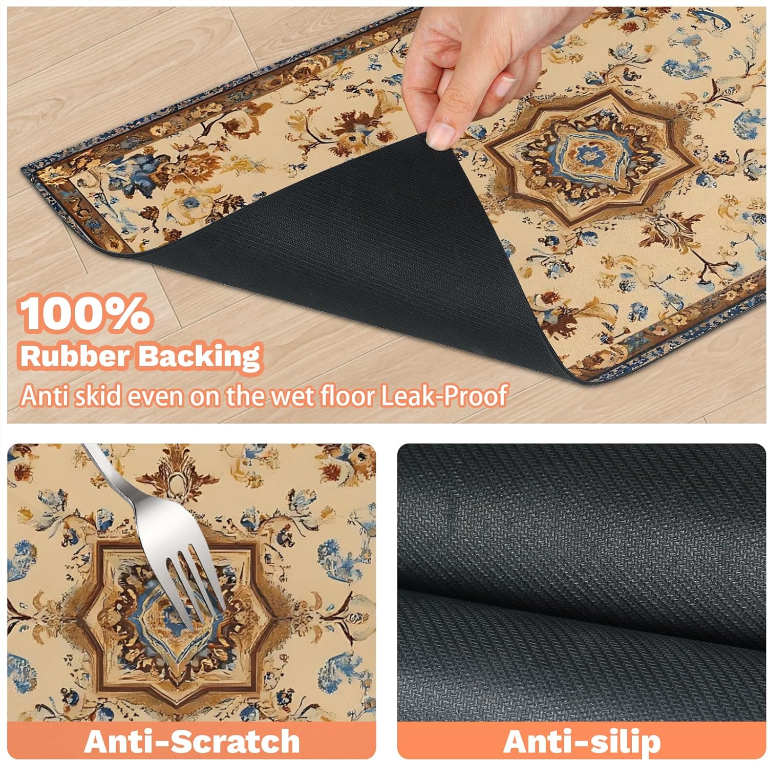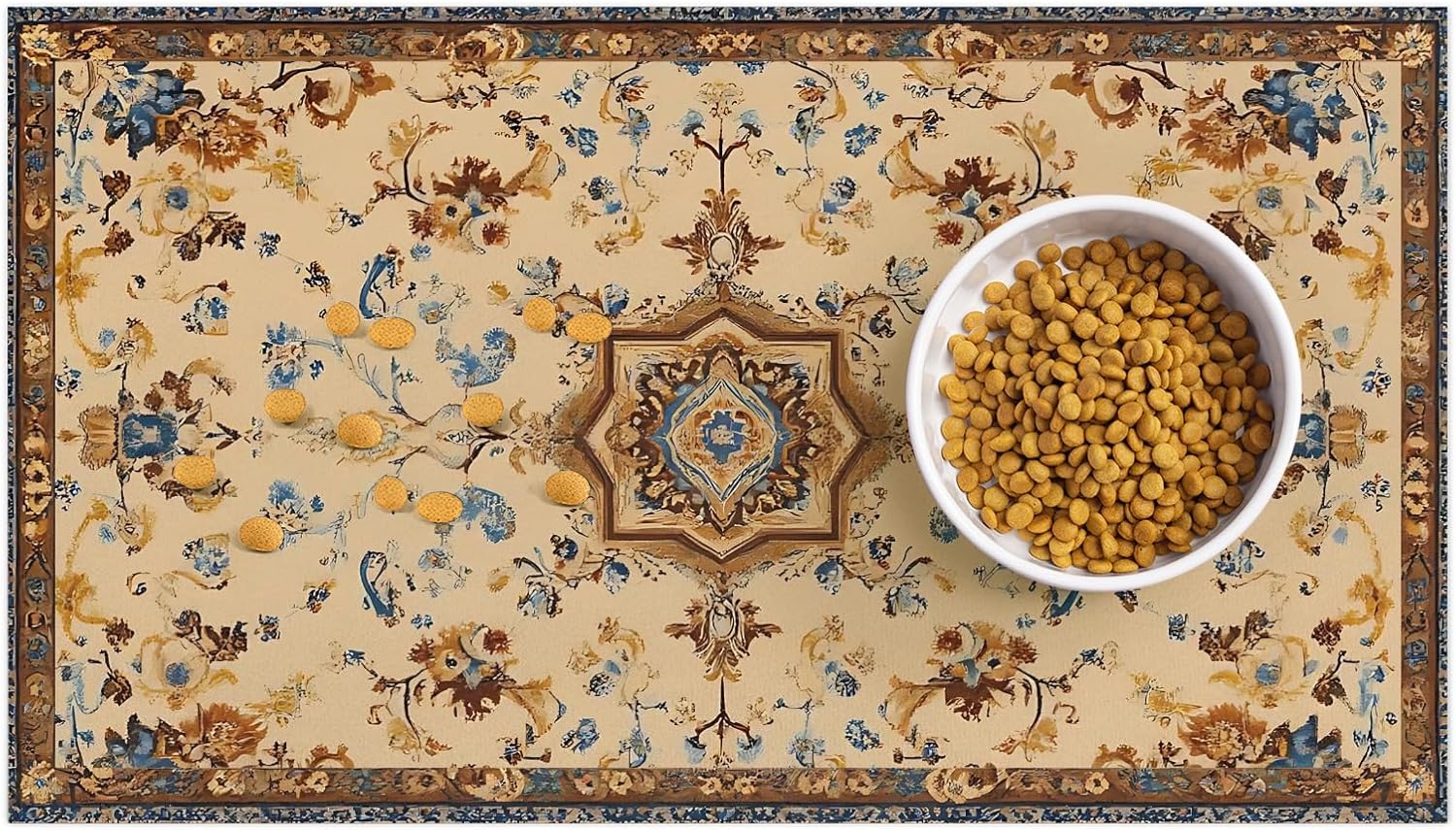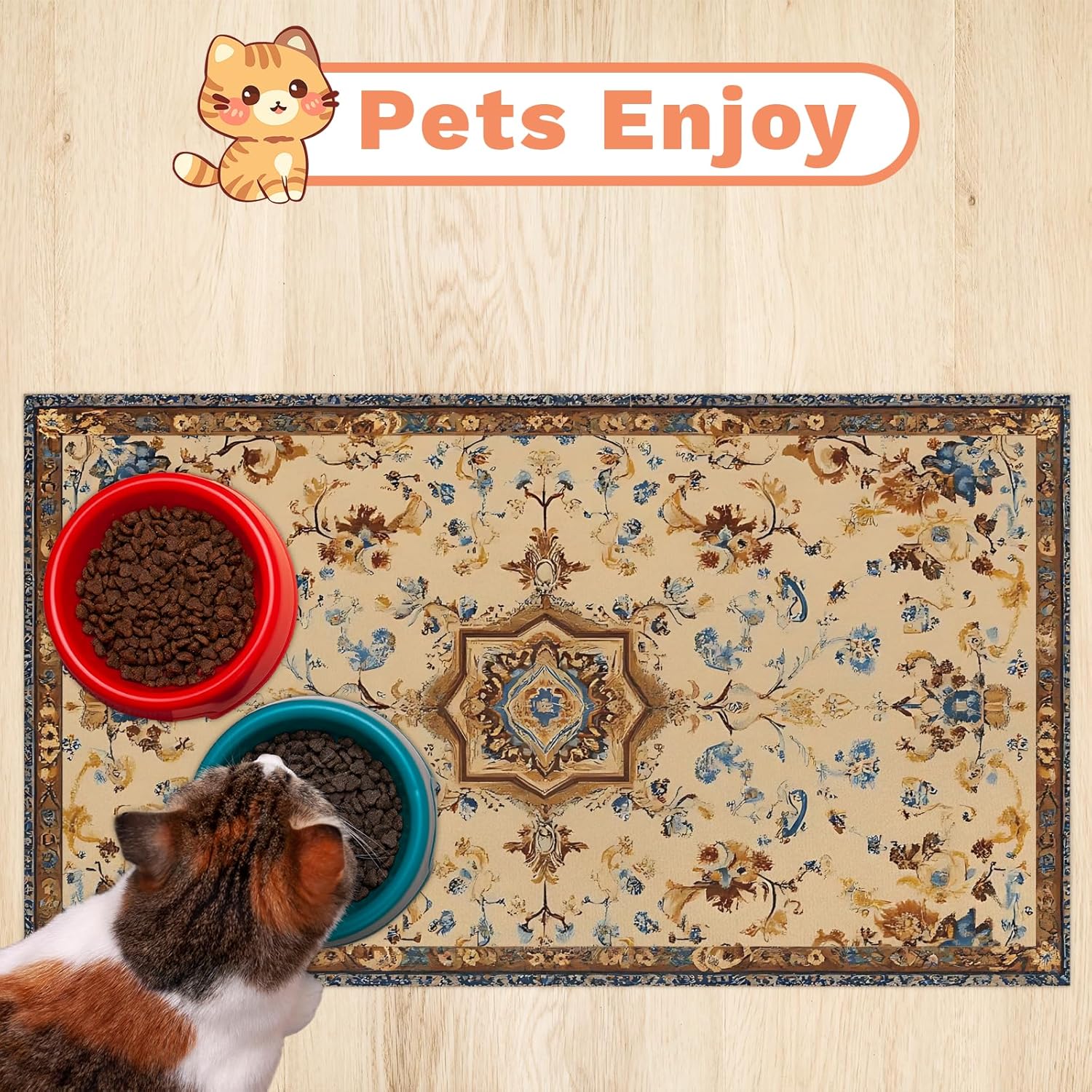 Pet Dog Cat Food Mat, Retro Pattern Pet Feeding Pad, 12 * 20 Inch Absorbent Dog Food Mat, Cat Dish Mat for Food and Water, Suitable for Dog Cat or Other Pets