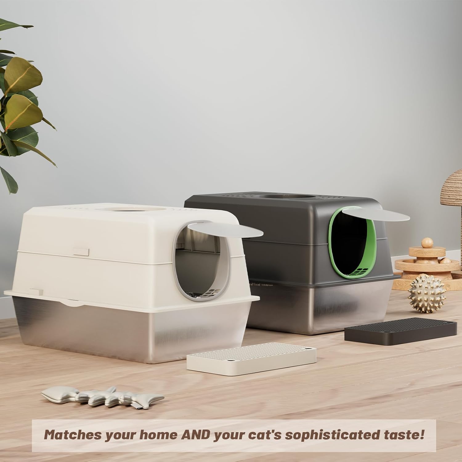 - Complete Kit, Comprehensive Support:Everything included: lidded litter box, dual-sided scooper, filtration mat, mini trash can, and liners. Supported by a 1-year support and 24/7 customer care for assistance with setup, use, or parts.