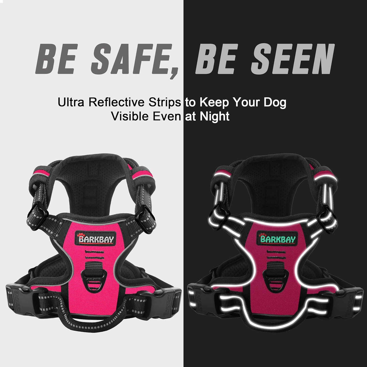 BARKBAY No Pull Dog Harness Front Clip Heavy Duty Reflective Easy Control Handle for Large Dog Walking(Pink,XS)