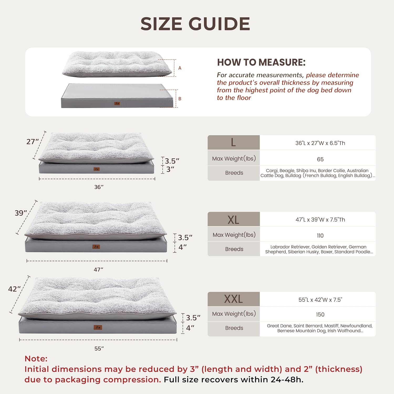 - Dog Mat Sizes: This crate bed availables in 36", 47", and 55" sizes to fit all breeds. Sturdy yet lightweight design with reinforced handles (matching base fabric) for easy portability.