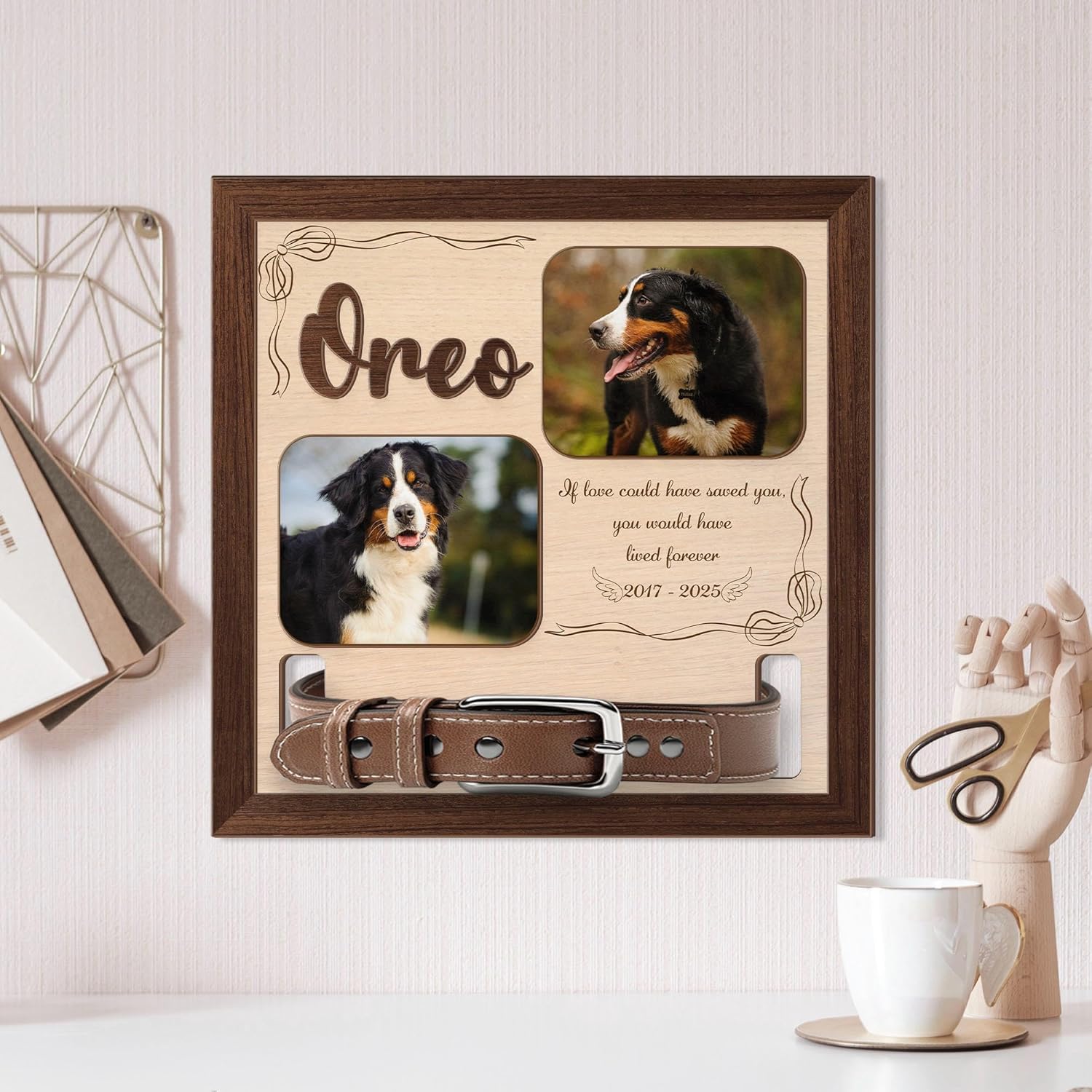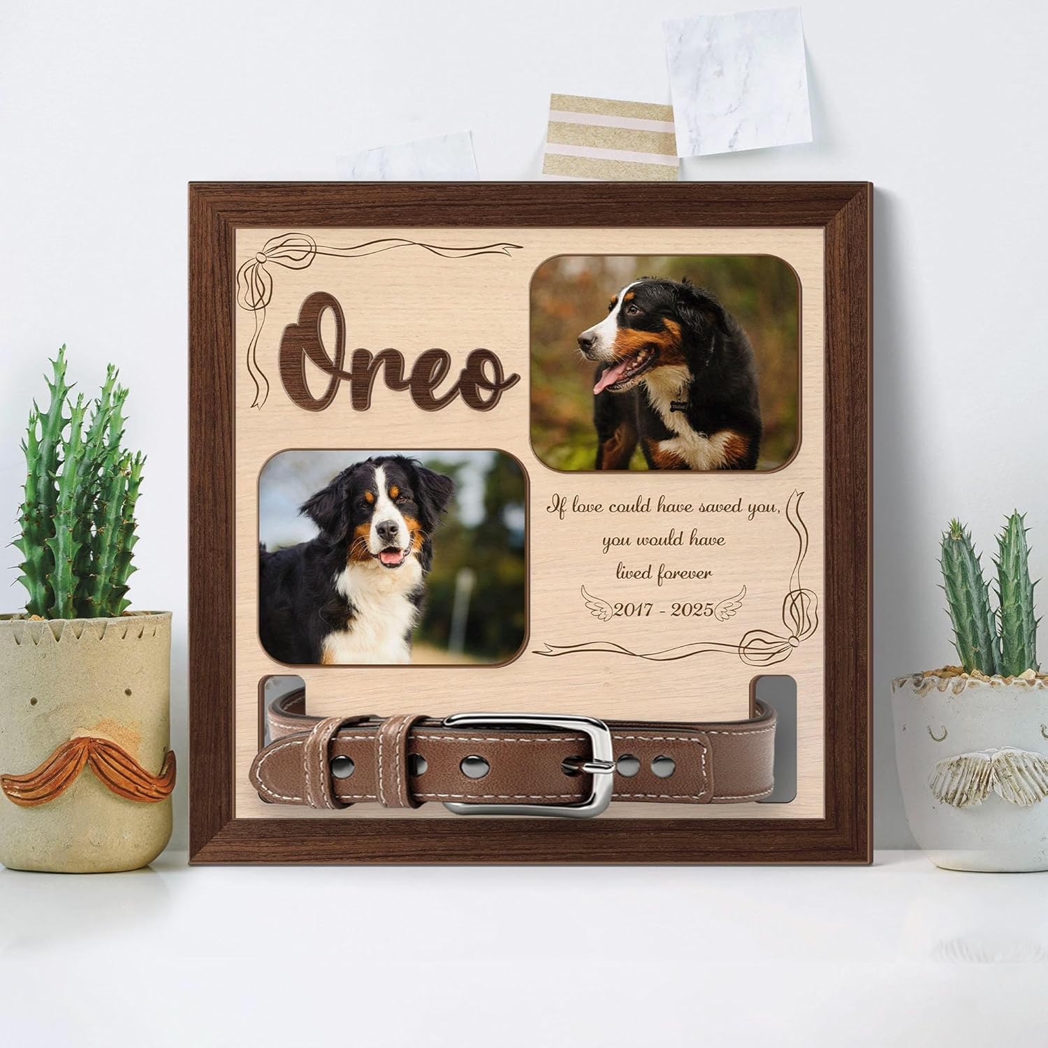 Custom Dog Memorial Collar Wood Frame – Personalized Dog Sympathy Gift, Memorial Pet Collar Holder with Photo, Loss of Dog Keepsake, Custom Pet Collar Holder for Dog Lovers