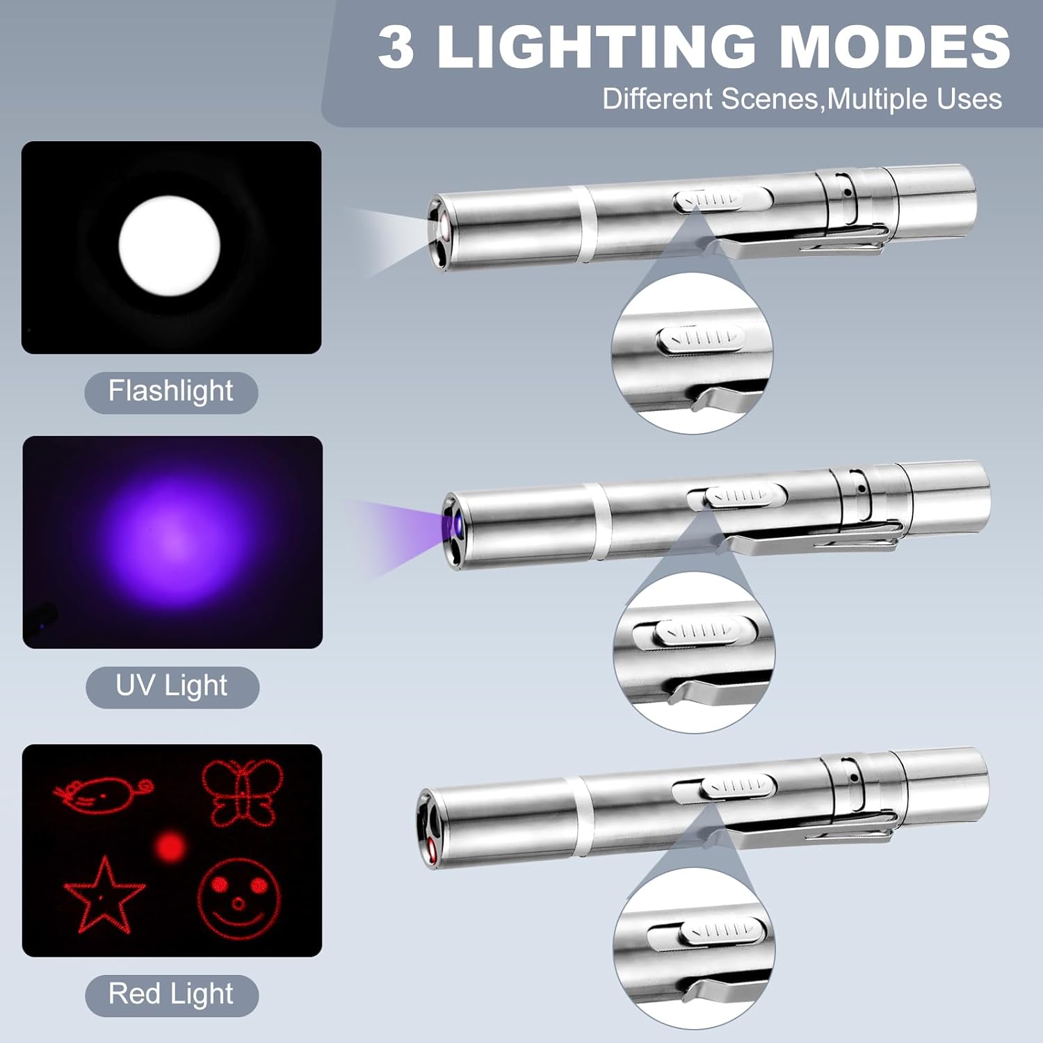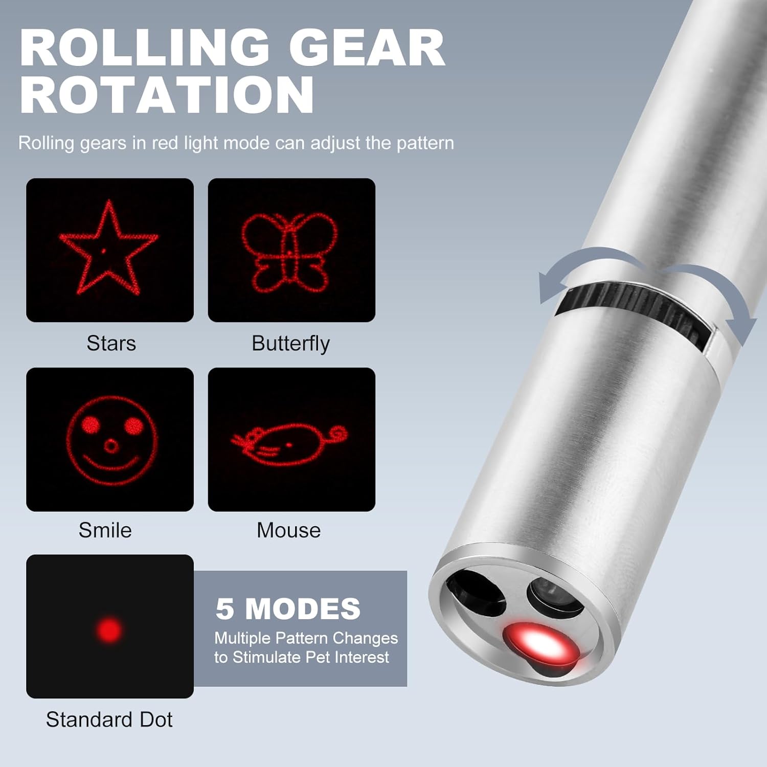 - 【Durable & Portable Design】Built with a stainless steel housing, anti-peel coating, and a metal clasp, this laser toy measures just 4.52×0.67×0.67 inches. Its compact size allows for easy portability—take it anywhere in your pocket or bag for fun on the go.