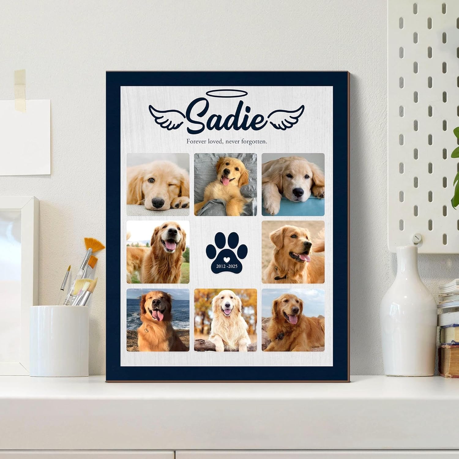- VERSATILE DECOR & THOUGHTFUL GIFT: Perfect for displaying on a shelf, desk, or wall, this custom memorial frame adds a personal touch to any space. A meaningful keepsake for honoring a beloved pet, it also makes a thoughtful sympathy gift for pet loss, offering comfort and remembrance to pet lovers.