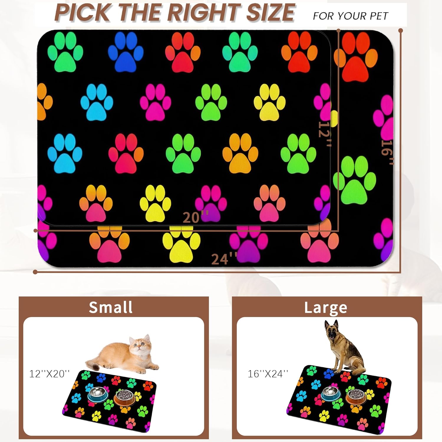 Cat Gradient Paw Print Dog Food Mat for Floors,Absorbent Pet Food and Water Bowl Mats,Non-Slip Pet Feeding Mat,Pet Supplies 16" x 24"