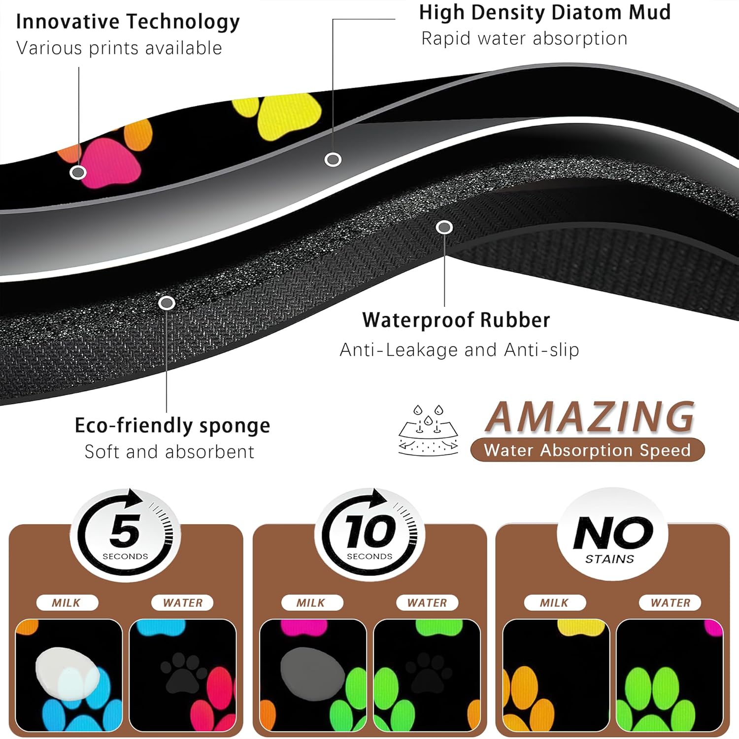 - Absorbent: This Cat Dog Gradient Paw Print pattern pet food mat helps prevent liquid spills and keeps your pet's eating area clean, making it a practical addition to your pet supplies. It helps keep paws dry even for pets who love to drink water. The sturdy design is resistant to tearing and helps prevent accidental ingestion.