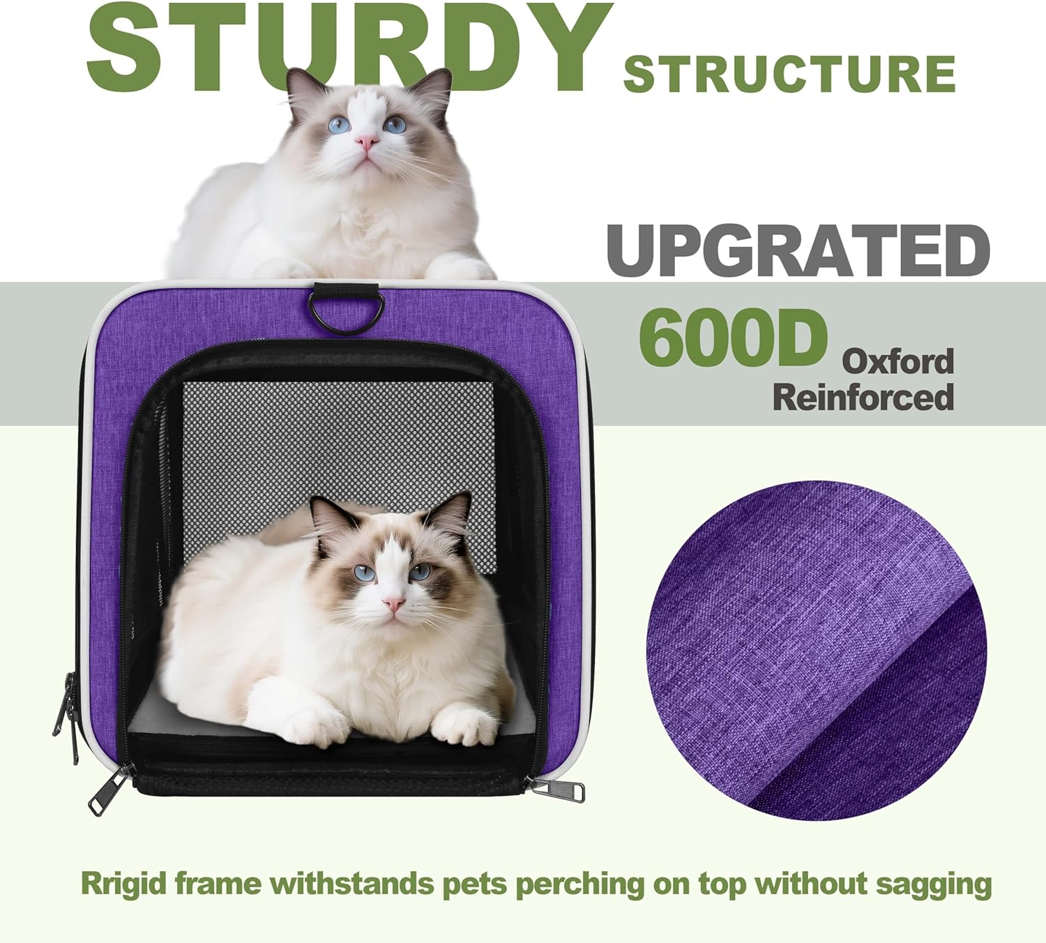 - Escape-Resistant - Self-locking zipper sliders prevent clever kitties from opening this animal carrying bag from the inside while traveling. Reinforced 600D oxford fabric prevents anxious cats or little dogs from claw damage