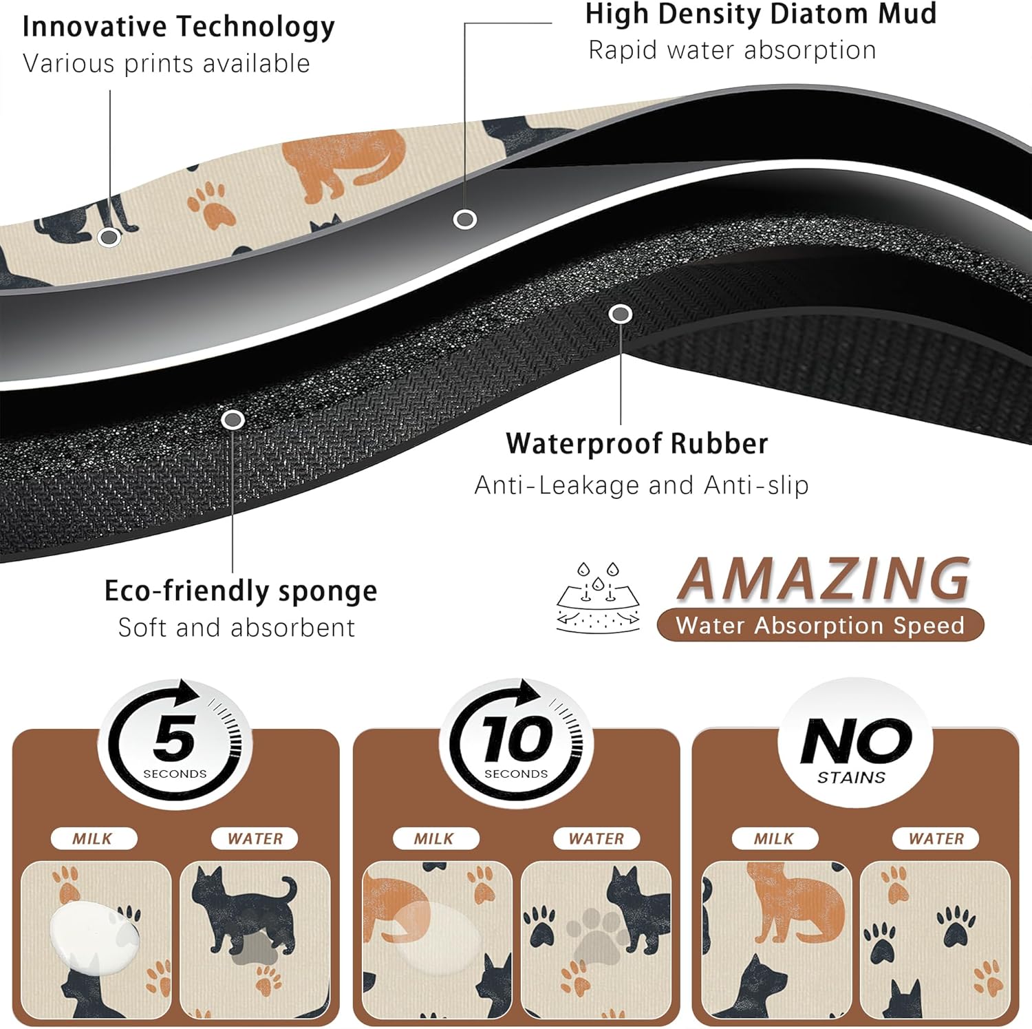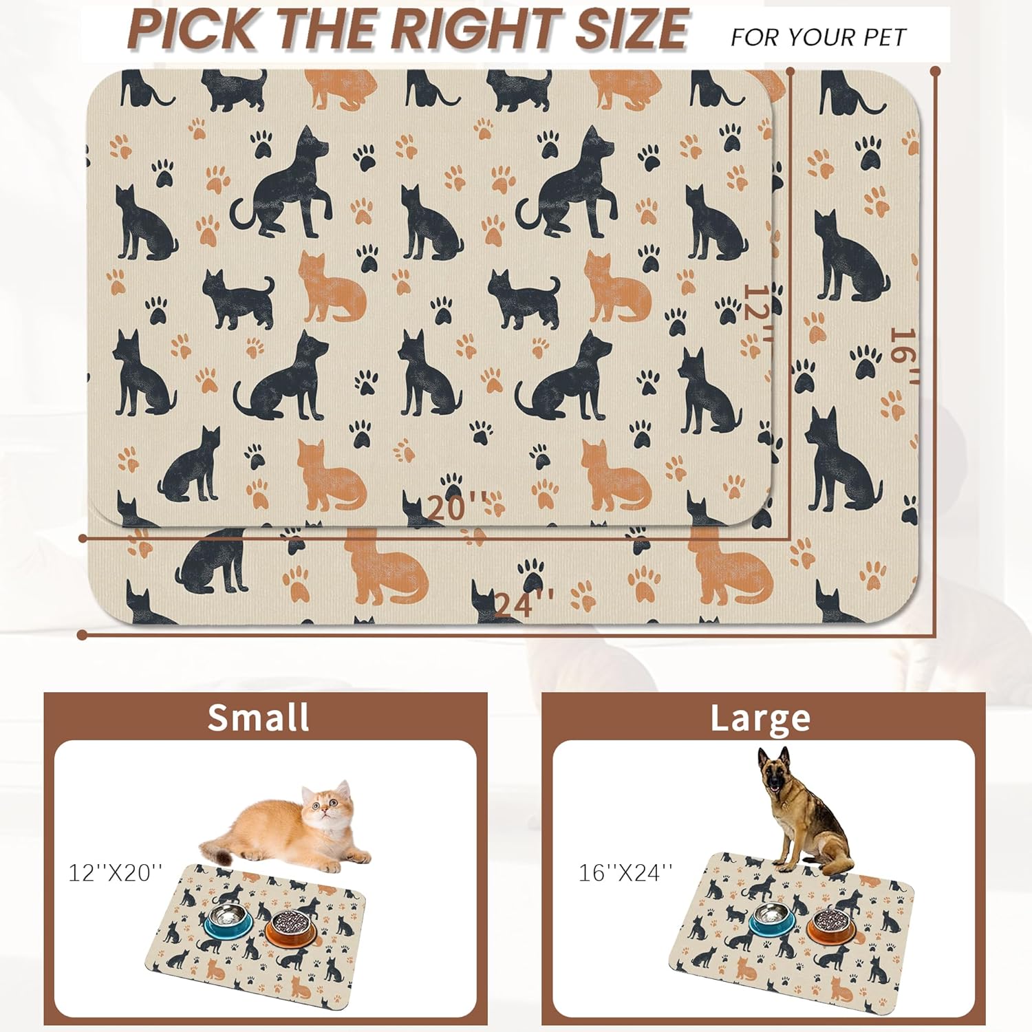 Cute Cat Paw Prints Dog Food Mat for Floors,Vintage Boho Absorbent Pet Food and Water Bowl Mats,Non-Slip Pet Feeding Mat,Pet Supplies 16" x 24"