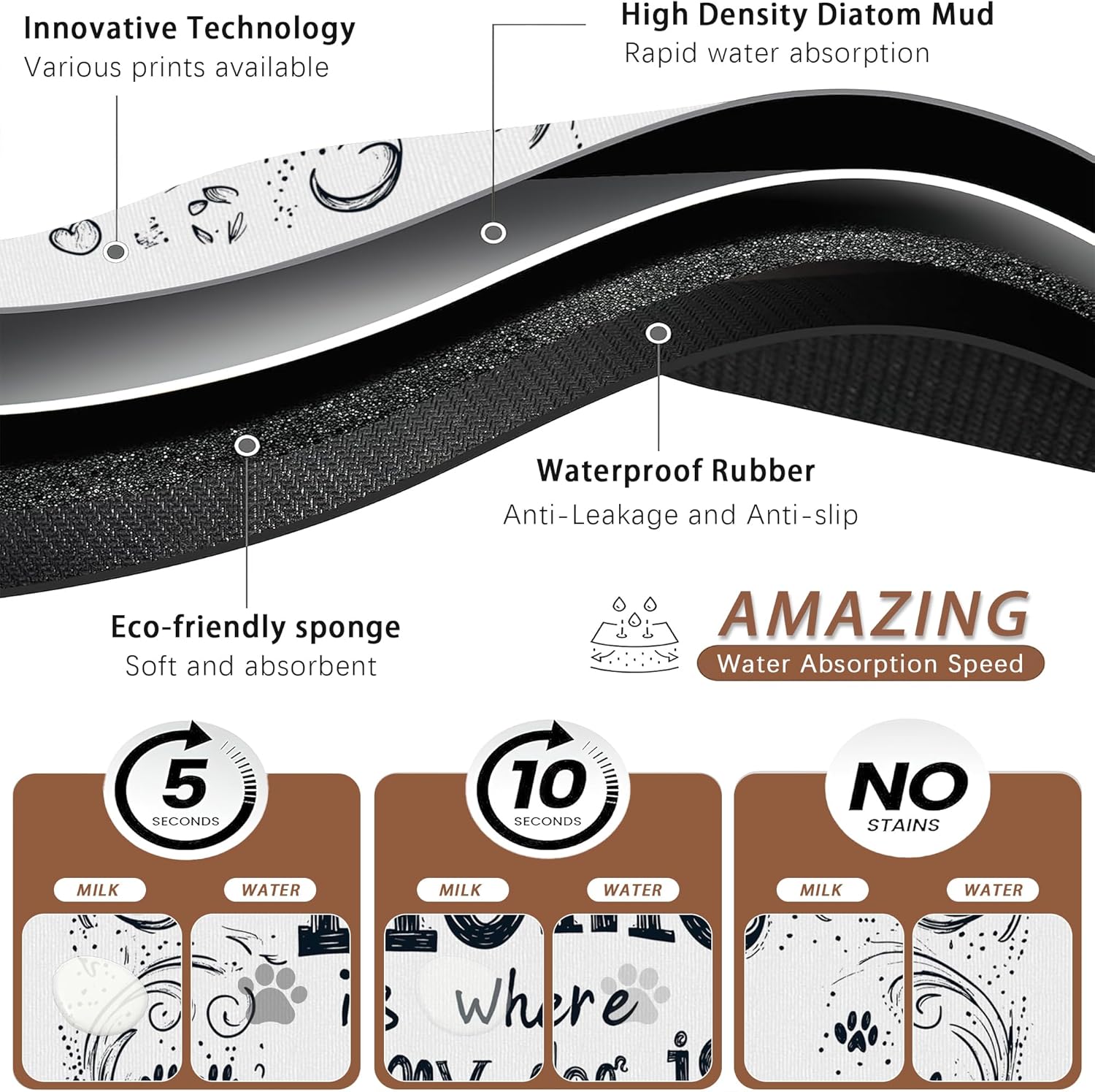 - Absorbent: This Home is Where My Dog is pattern pet food mat helps prevent liquid spills and keeps your pet's eating area clean, making it a practical addition to your pet supplies. It helps keep paws dry even for pets who love to drink water. The sturdy design is resistant to tearing and helps prevent accidental ingestion.