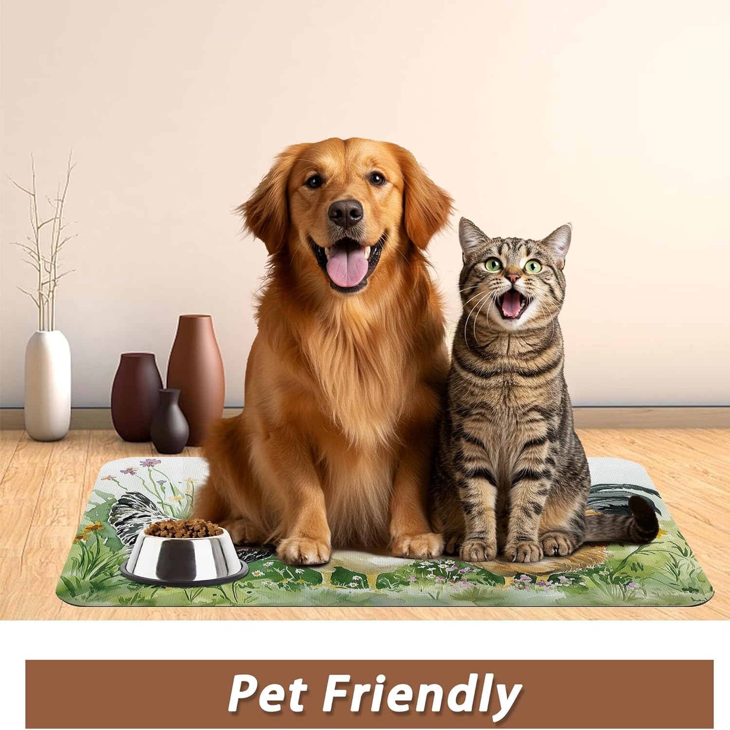 Chicken Rooster Dog Food Mat for Floors,Farm FlowerAbsorbent Pet Food and Water Bowl Mats,Non-Slip Pet Feeding Mat,Pet Supplies 16" x 24"